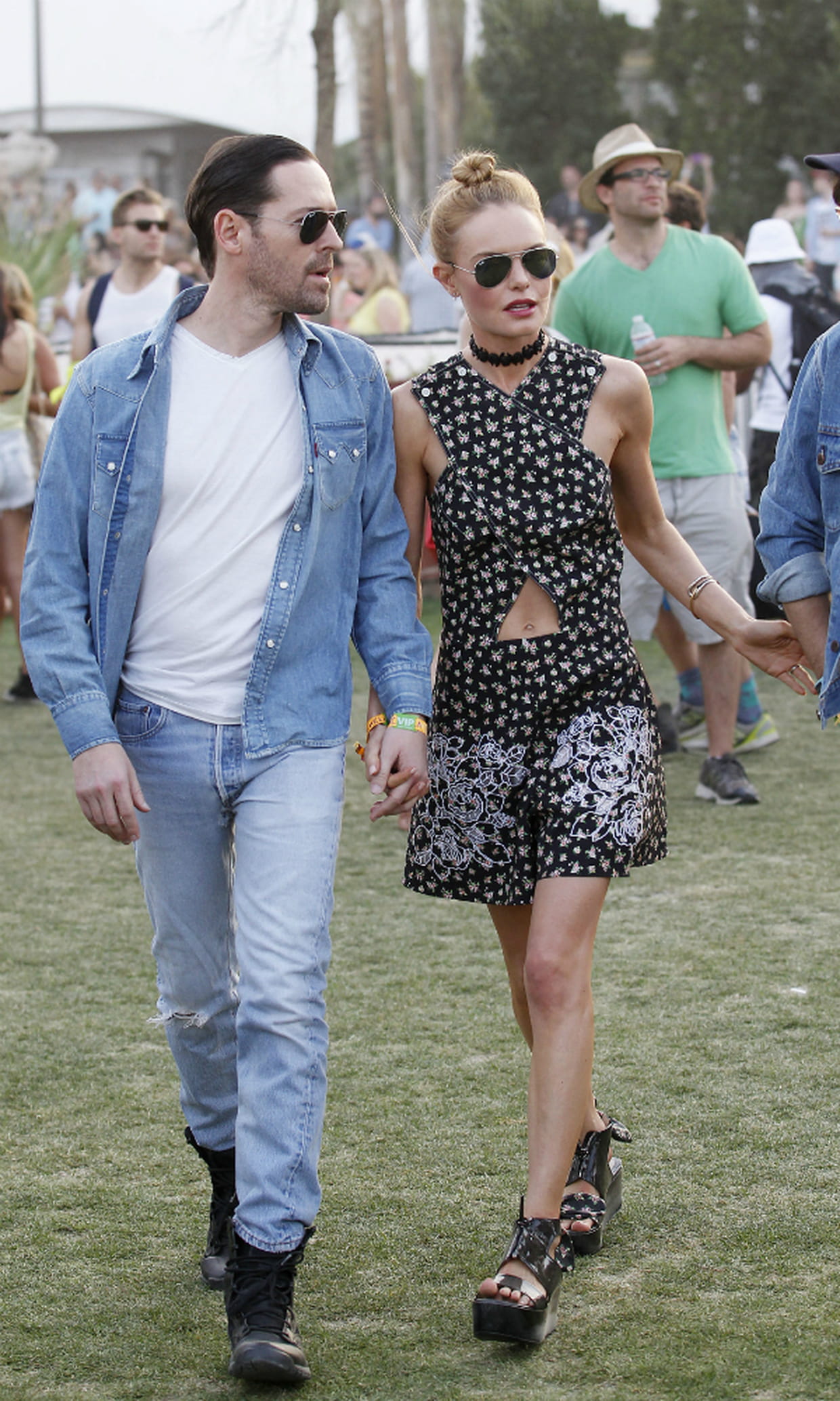 Kate Bosworth en robe croisée à pois et à broderies au festival Coachella le 12 avril 2014.