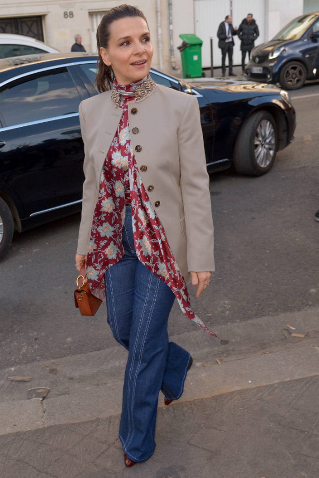 Juliette Binoche en jean à Paris le 28 février 2019.