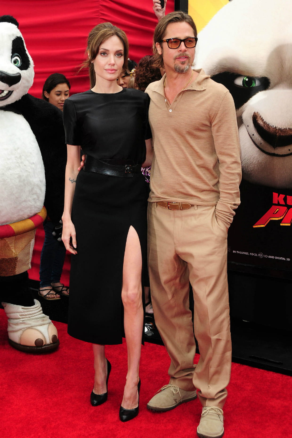 Angelina Jolie en haut noir et jupe fendue avec Brad Pitt à l'avant-première du film Kung Fu Panda 2 à Los Angeles le 22 mai 2011.