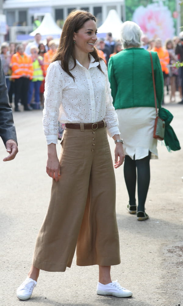 Kate Middleton en baskets blanches Cotu de Superga à l'exposition florale de Chelsea le 20 mai 2019.