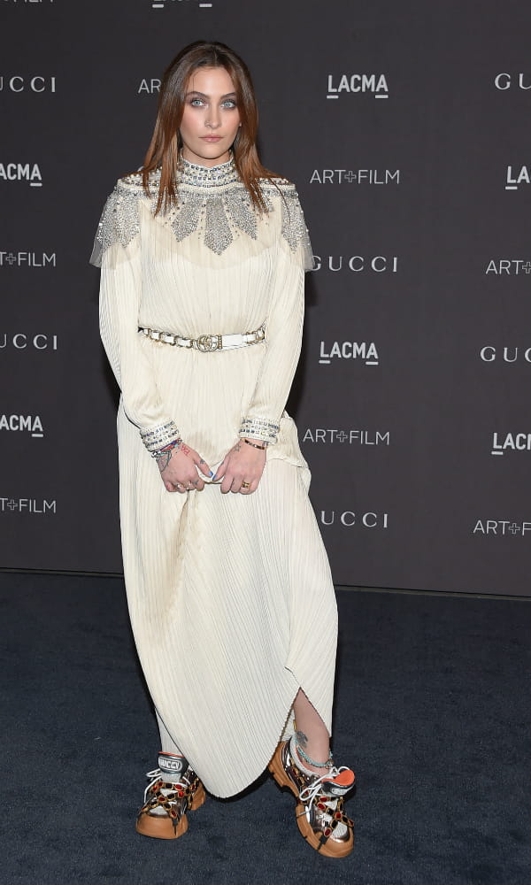 Paris Jackson en baskets à motifs Flashtrek trainers de Gucci au gala LACMA Art + Film à Los Angeles le 3 novembre 2018.