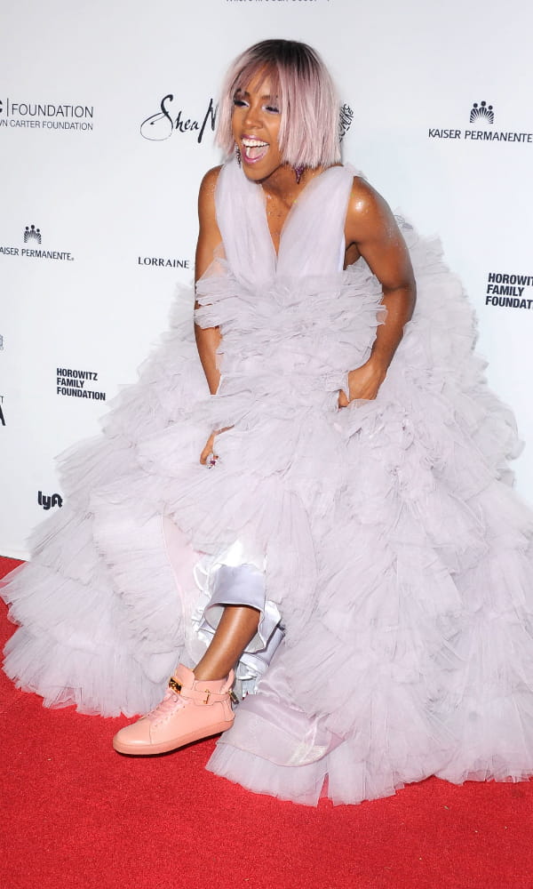Kelly Rowland en baskets pêche de Buscemi au gala Wearable à Los Angeles le 29 avril 2017.