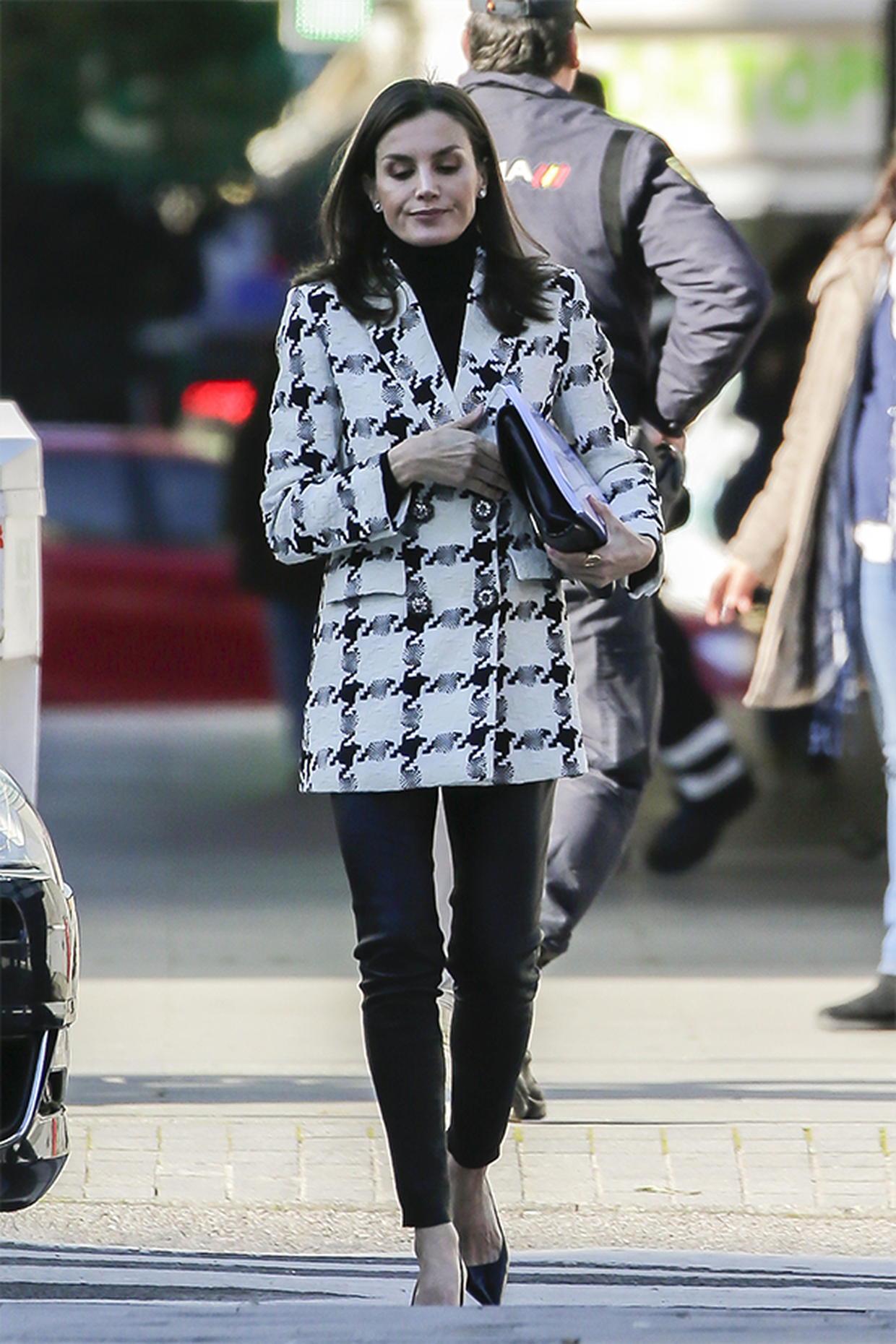 Letizia d'Espagne en blazer imprimé blanc et noir