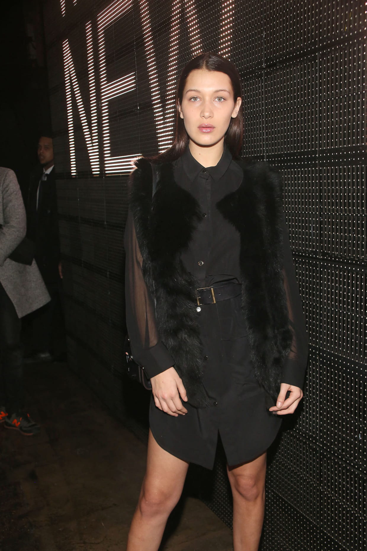 Bella Hadid en total look noir au défilé Donna Karan à New York le 15 février 2015.