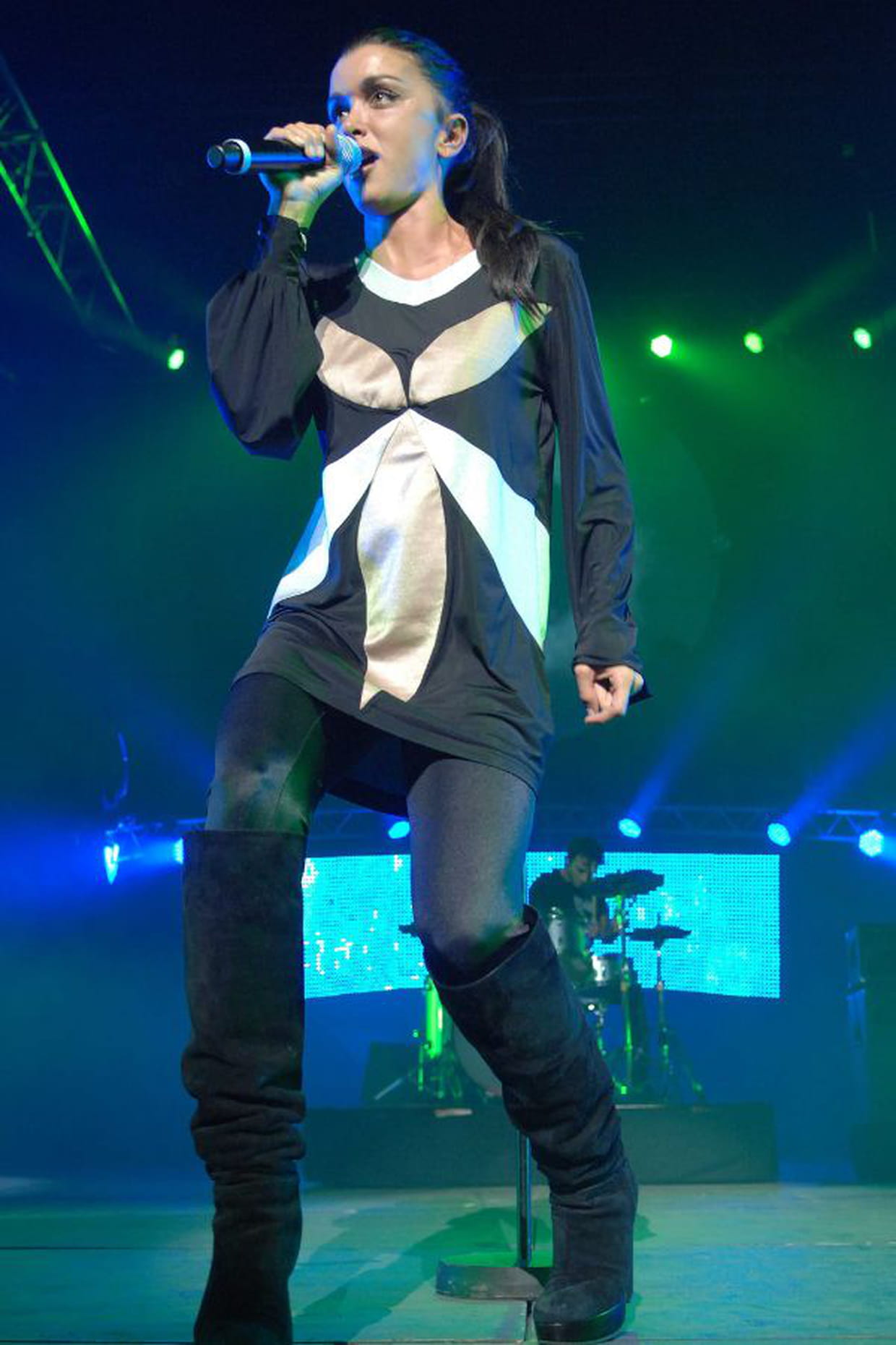 Jenifer en top à détails satinés à un concert à Marseille le 20 septembre 2008.