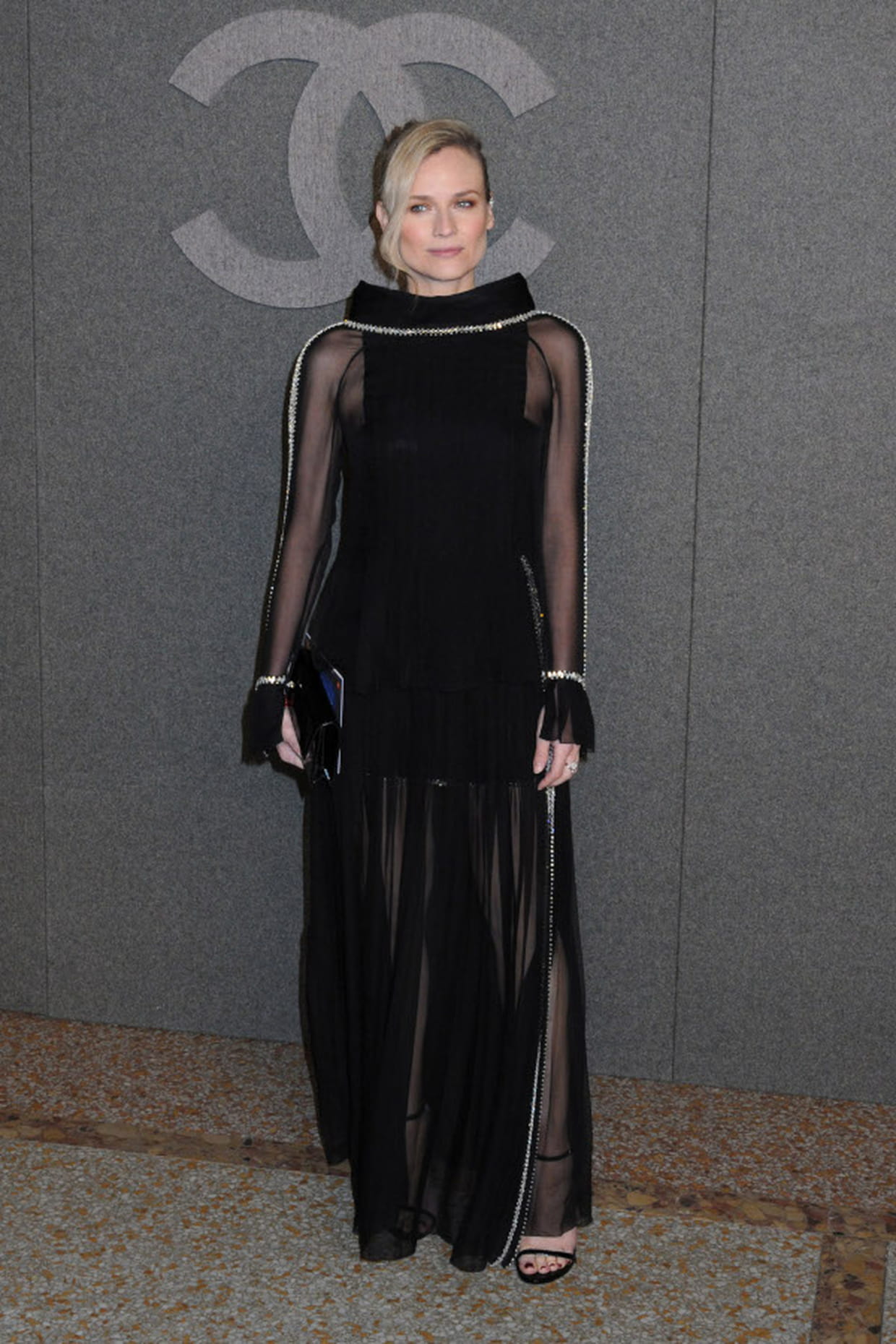 Diane Kruger en longue robe noire à strass transparente au défilé Chanel Métiers d'Art à New York le 4 décembre 2018.
