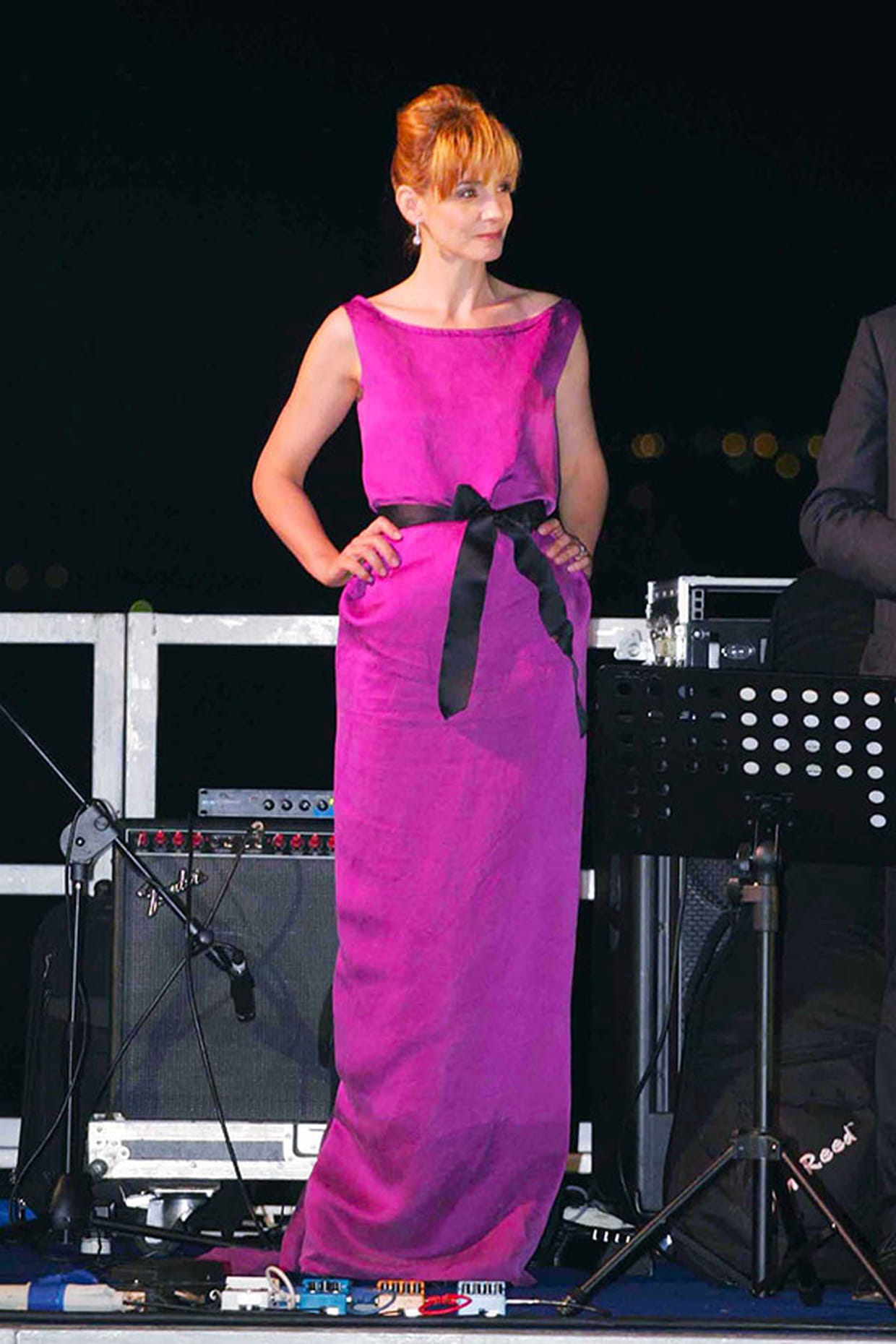 Clotilde Courau en robe violette à nœud noir au Festival de musique et de cinéma d'Ischia en Italie le 9 juillet 2007.