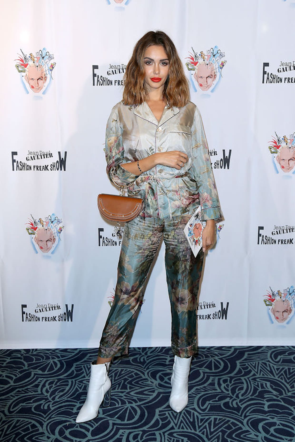 Nabilla Vergara en ensemble fleuri à l'avant-première du spectacle Fashion Freak Show de Jean Paul Gaultier aux Folies Bergères à Paris le 28 septembre 2018.