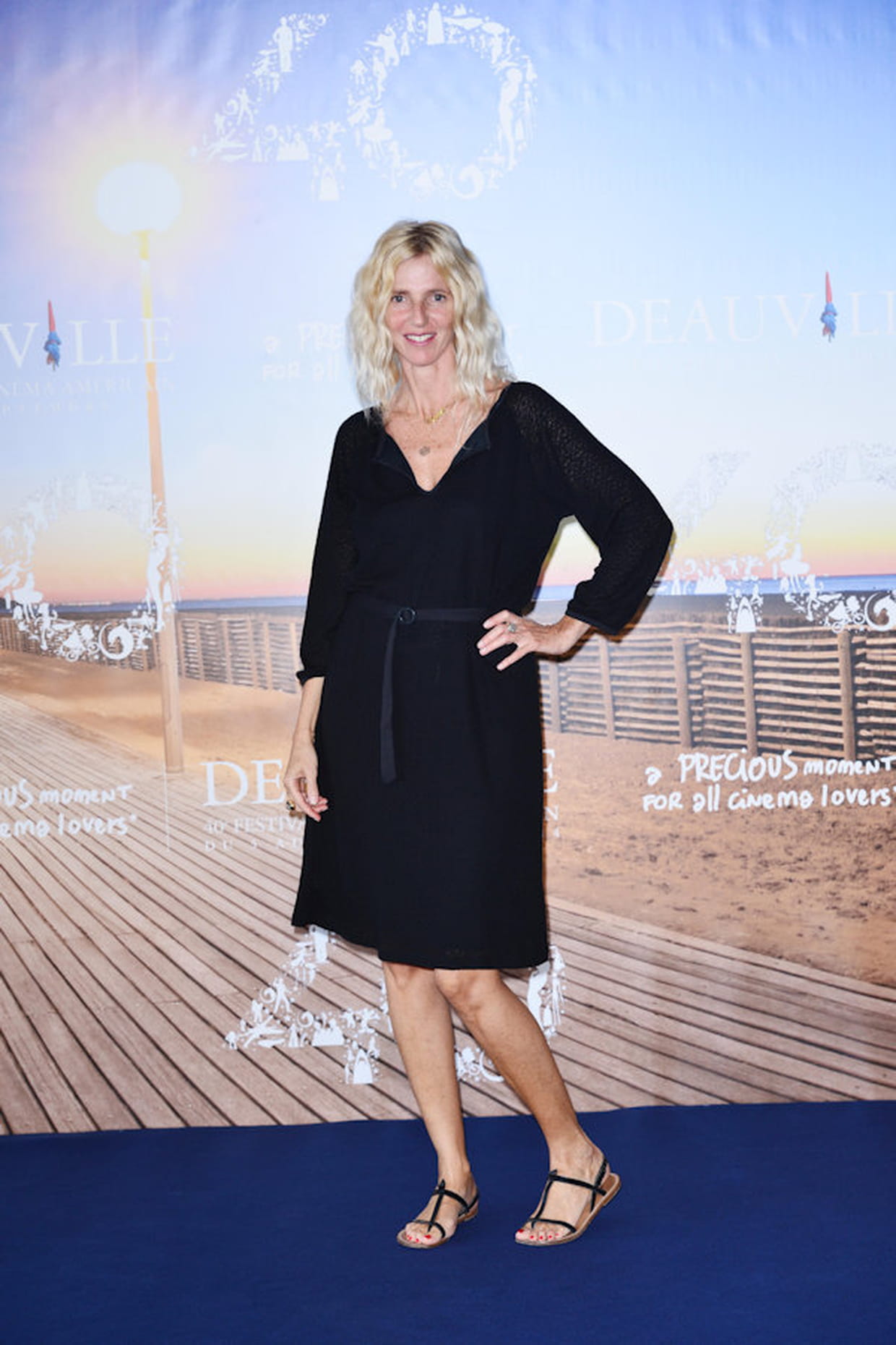 Sandrine Kiberlain en robe ceinturée noire au 40ème Festival du cinéma américain de Deauville le 13 septembre 2013.