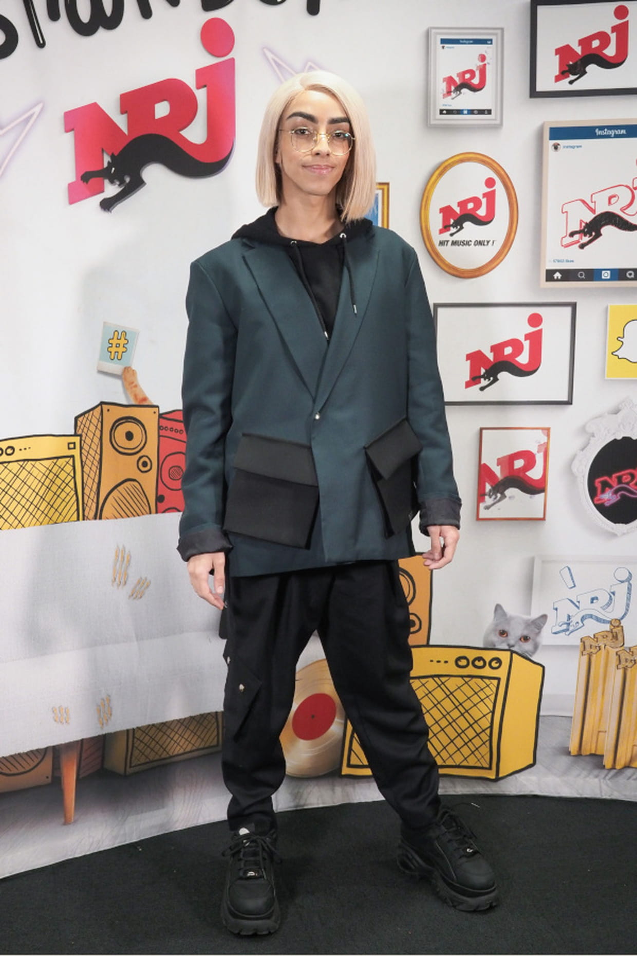Bilal Hassani en veste à poches oversize lors de l'émission "Bienvenue chez Cauet" sur NRJ à Paris le 16 janvier 2019.