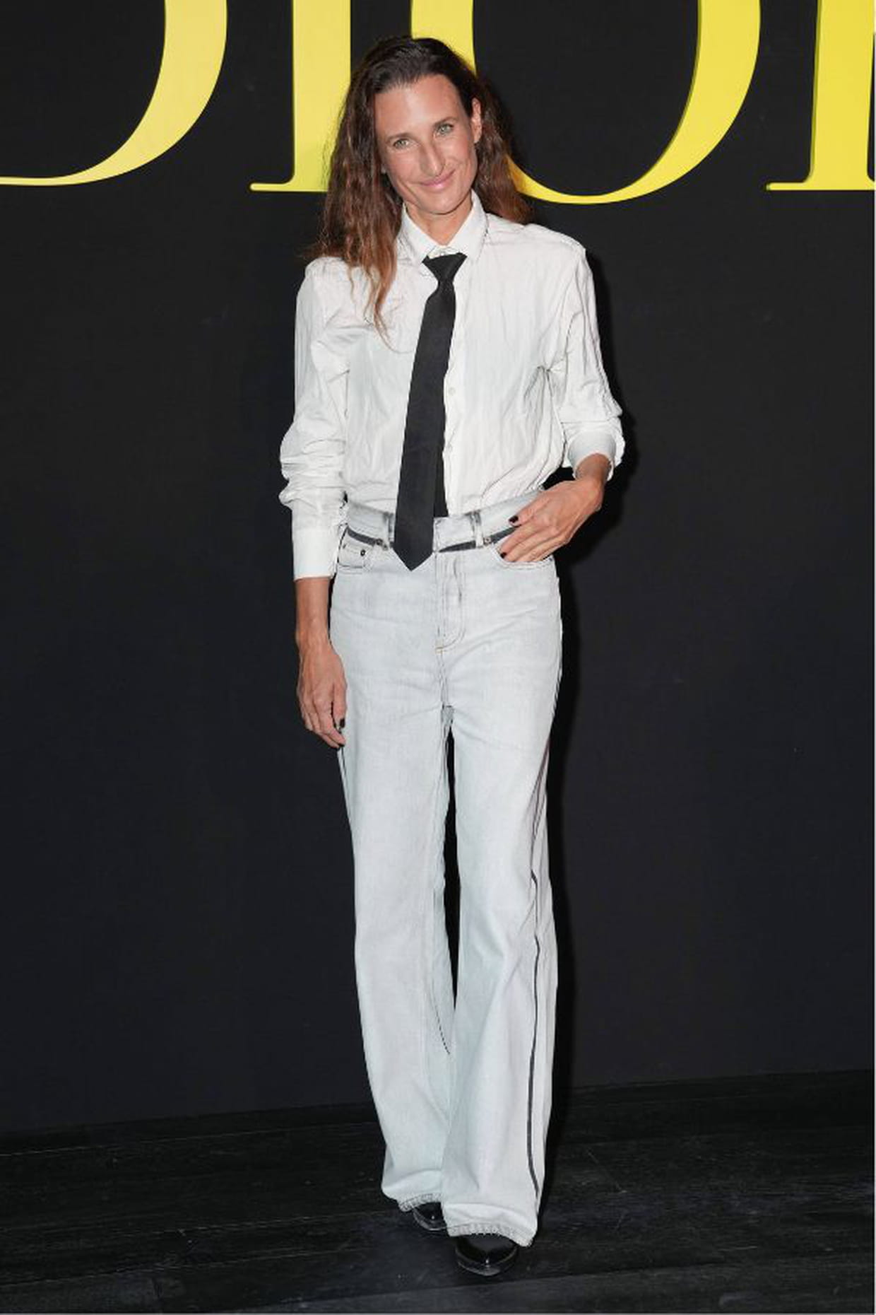 Camille Cottin en jean clair et chemise blanche au défilé Dior lors de la fashion week printemps-été 2024 à Paris le 26 septembre 2023.