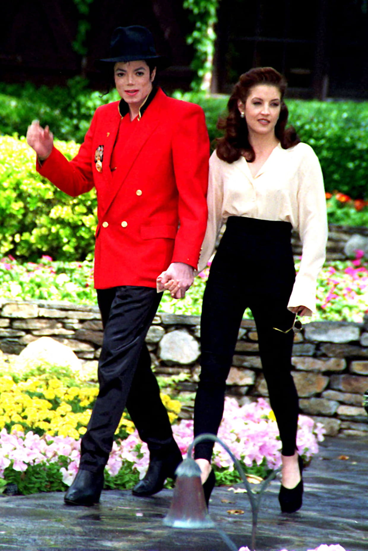 Lisa Marie Presley en pantalon fuseau avec Michael Jackson à Neverland en Californie.