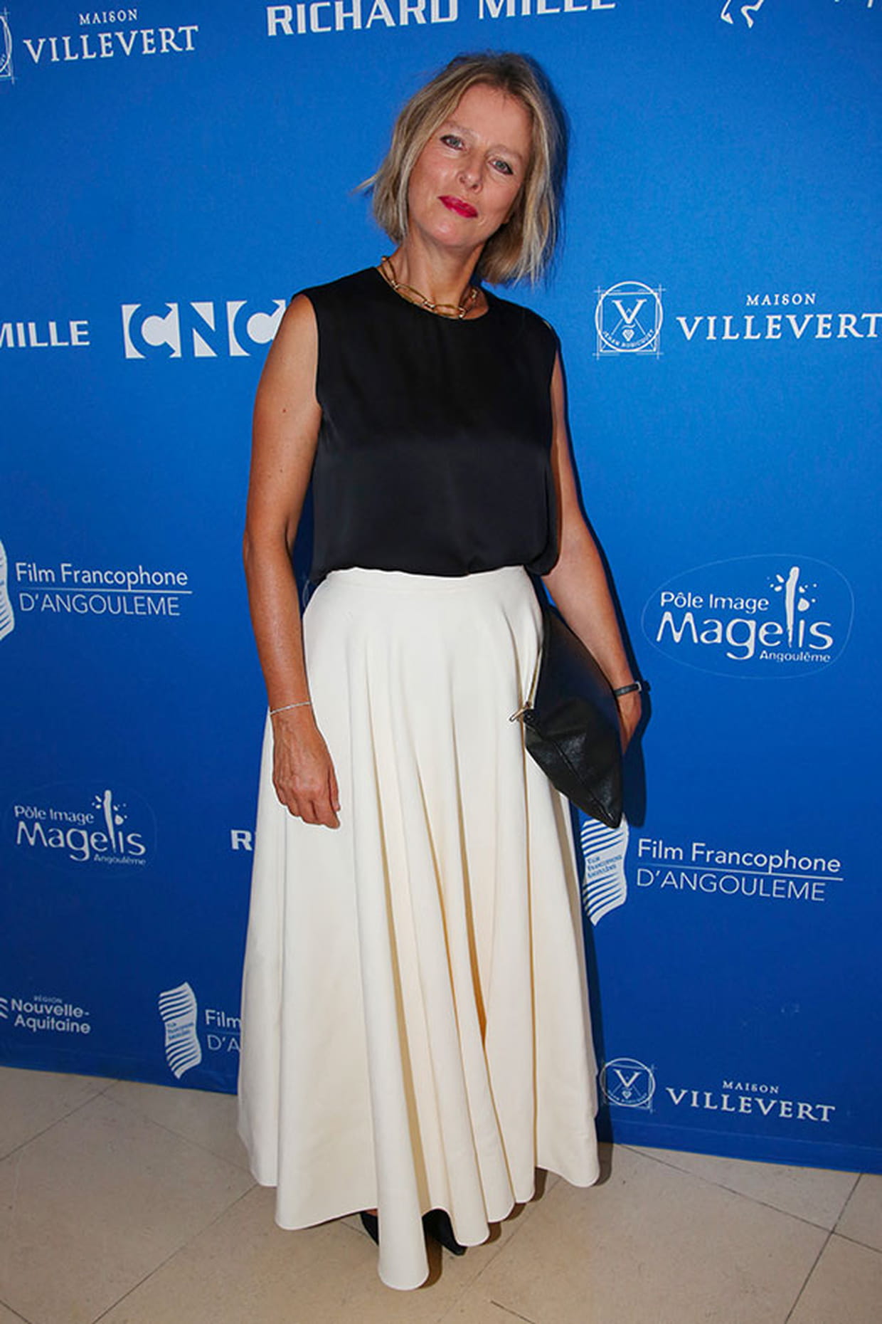 Karin Viard en jupe blanche et débardeur noir à la cérémonie de clôture de la 11ème édition du Festival du film d'Angoulême le 26 août 2018.