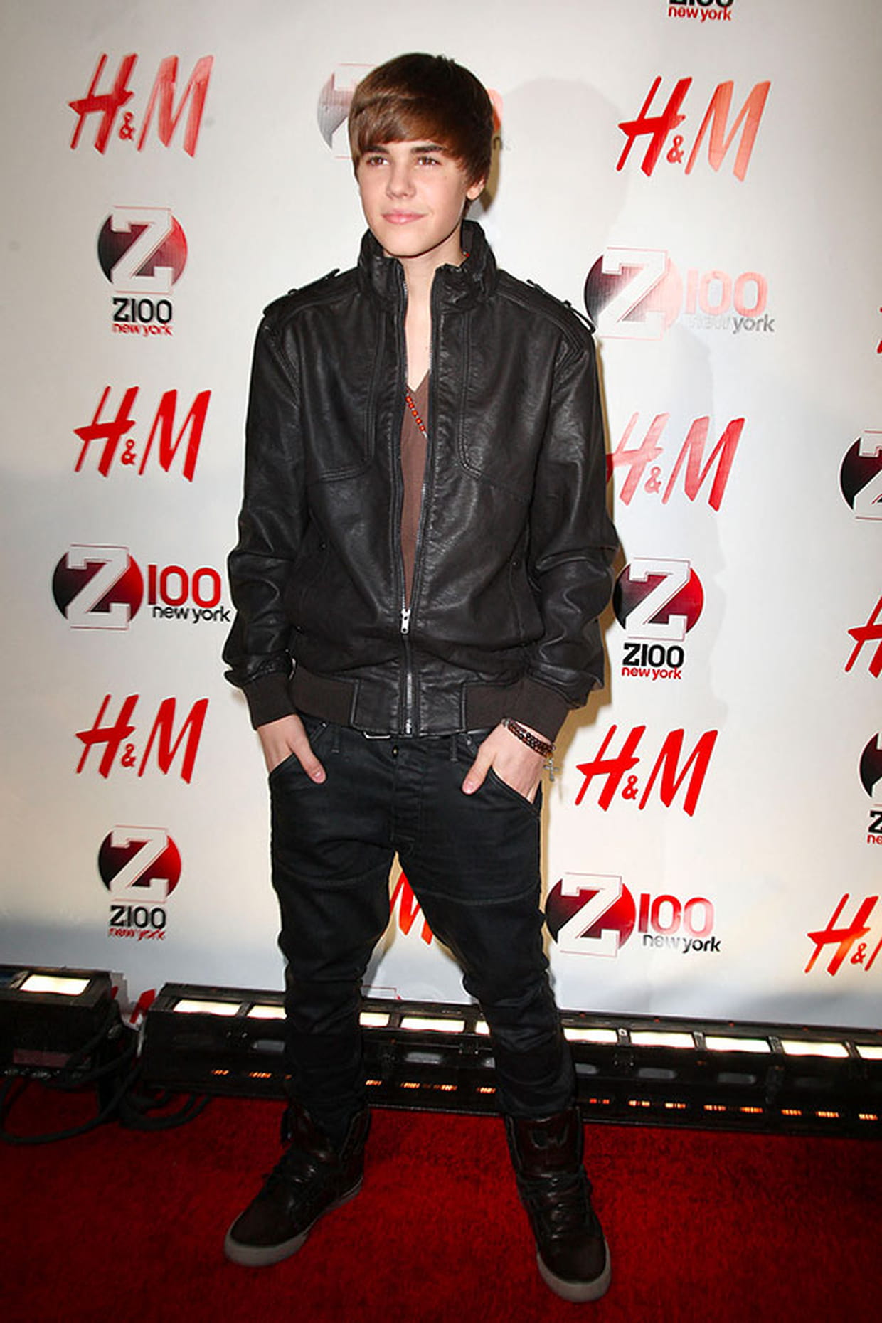 Justin Bieber en veste en cuir noire et jean au Z100's Jingle Ball à New York le 10 décembre 2010.