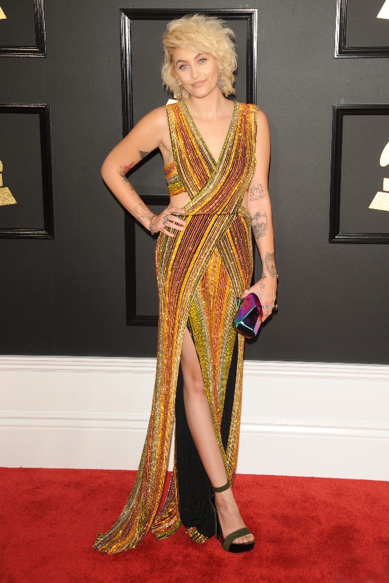 Paris Jackson en robe croisée lors de la 59ème cérémonie des Grammy Awards à Los Angeles le 12 février 2017.