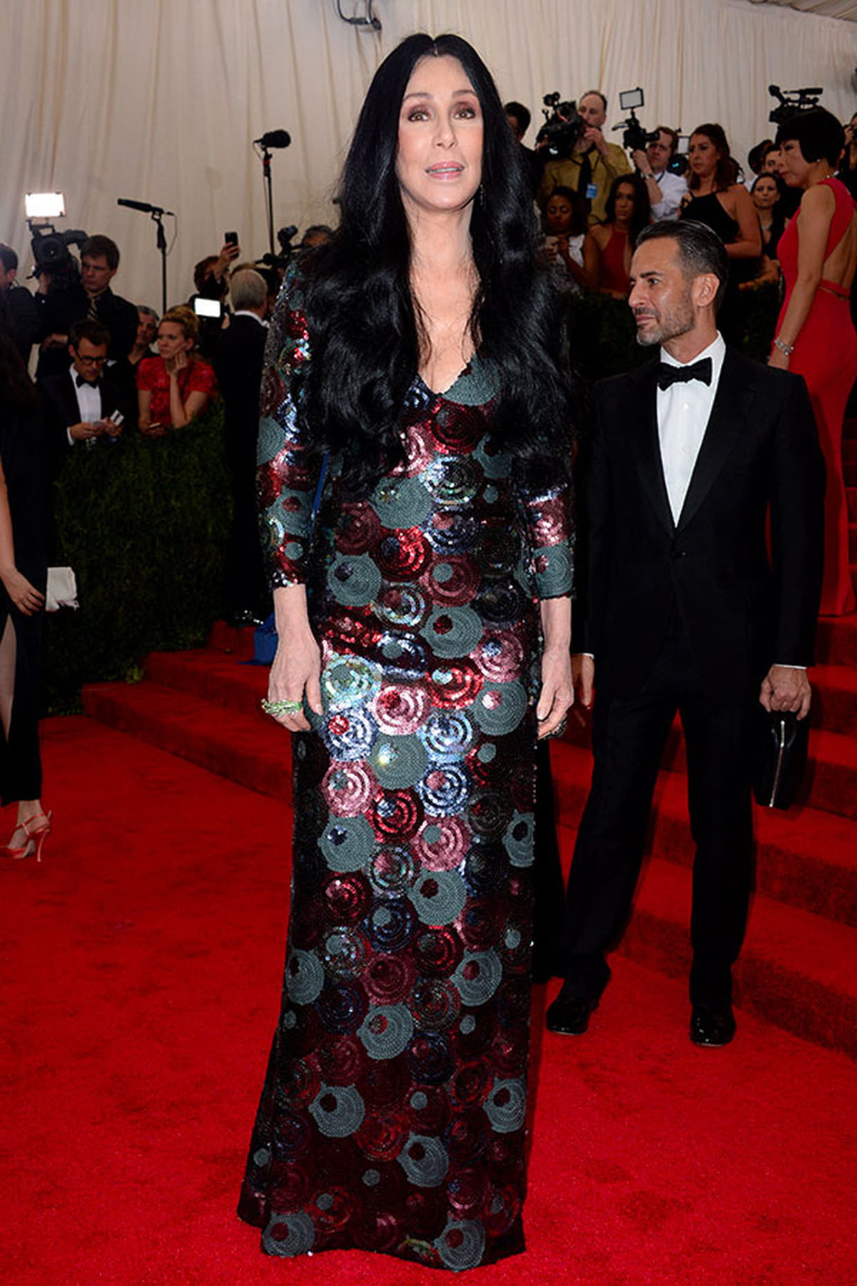 Cher en robe à motifs en sequins au Met Gala à New York le 4 mai 2015.