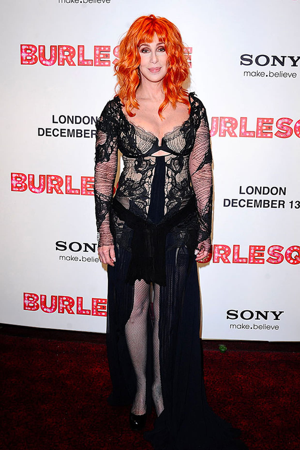 Cher en robe en dentelle asymétrique à l'avant-première du film Burlesque à Londres le 13 décembre 2010.
