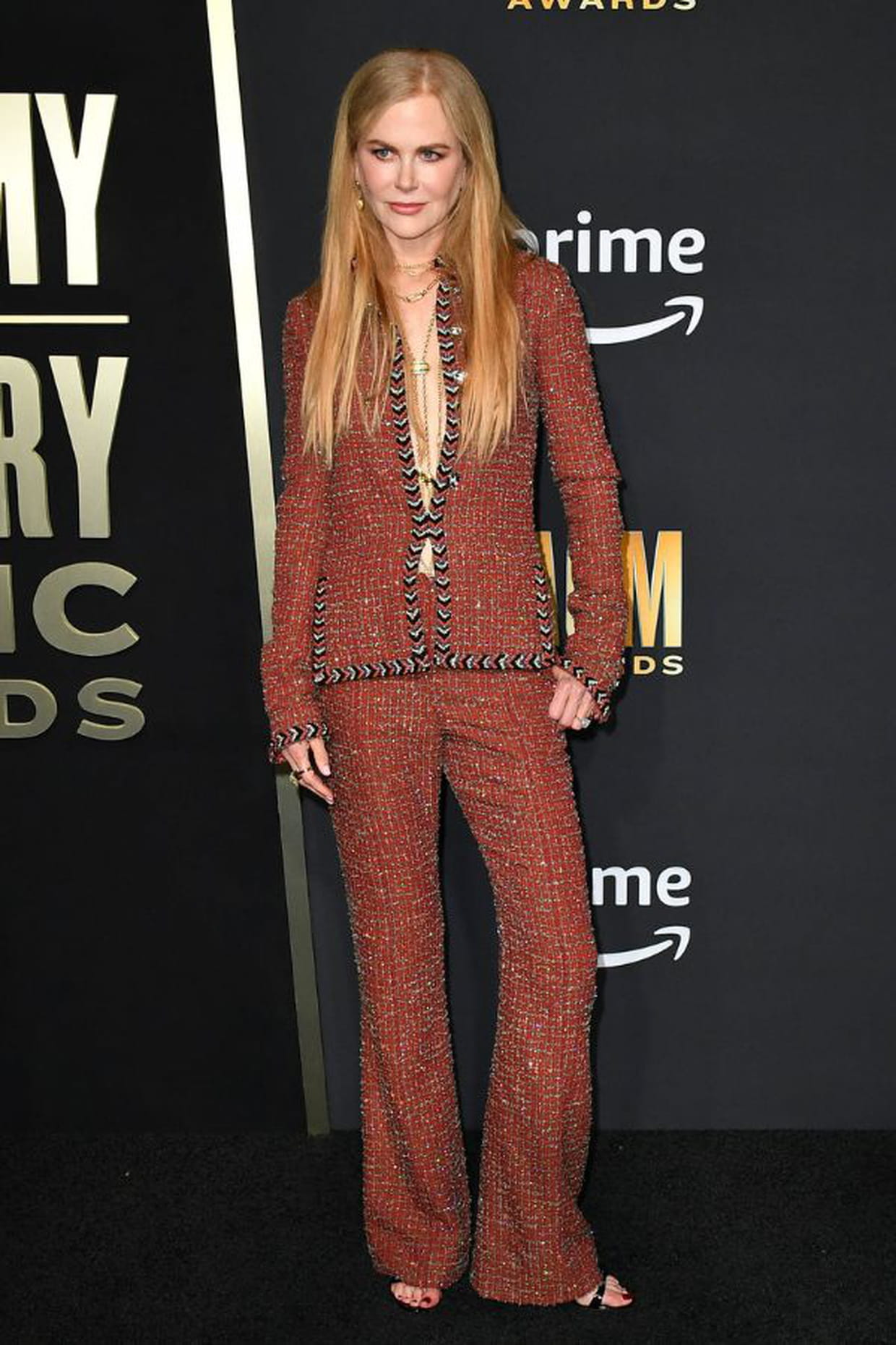 Nicole Kidman en ensemble de tweed ocre à la 58ème édition des Country Music Awards au Texas le 11 mai 2023.