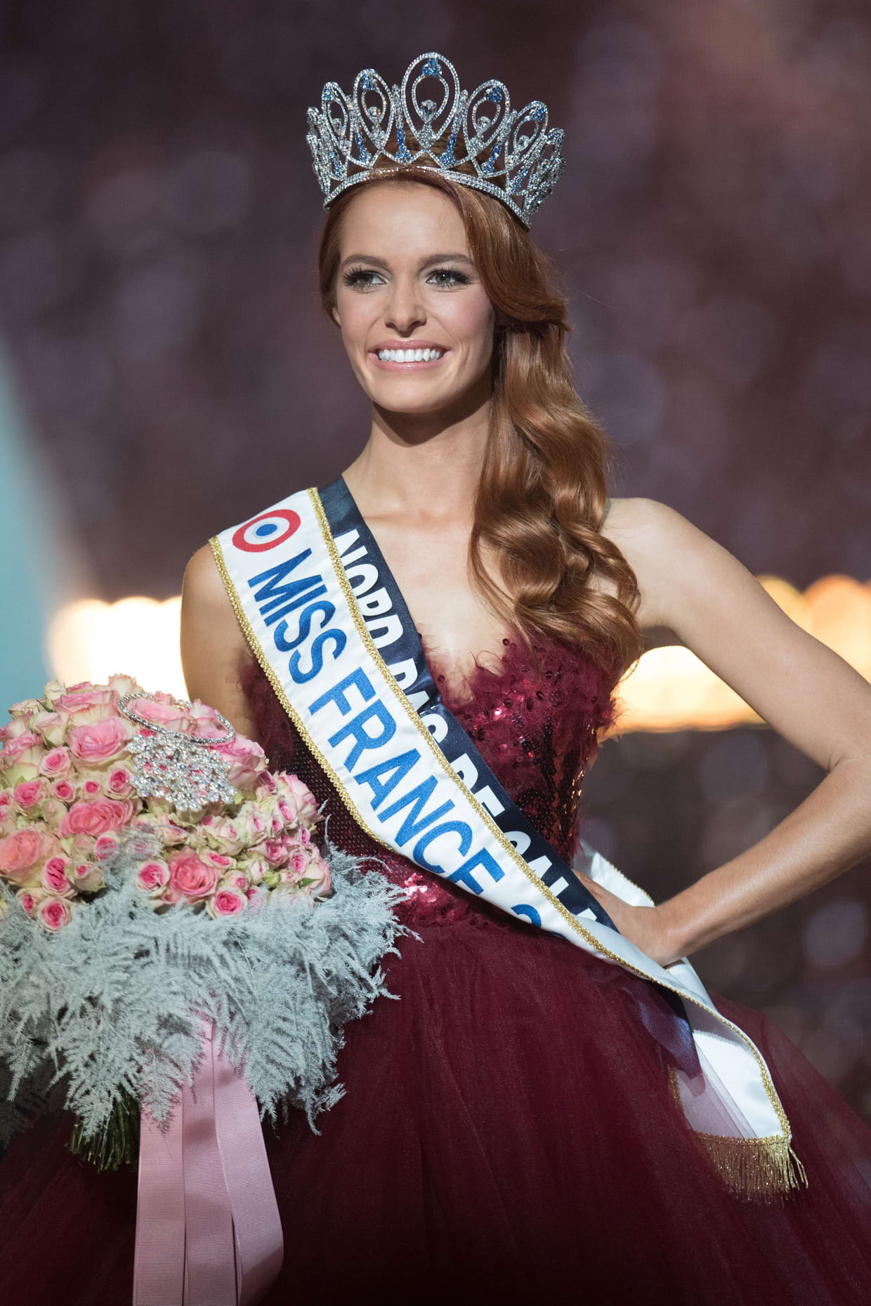 Maëva Coucke en robe de princesse lors de son élection Miss France à Chateauroux le 16 décembre 2017.