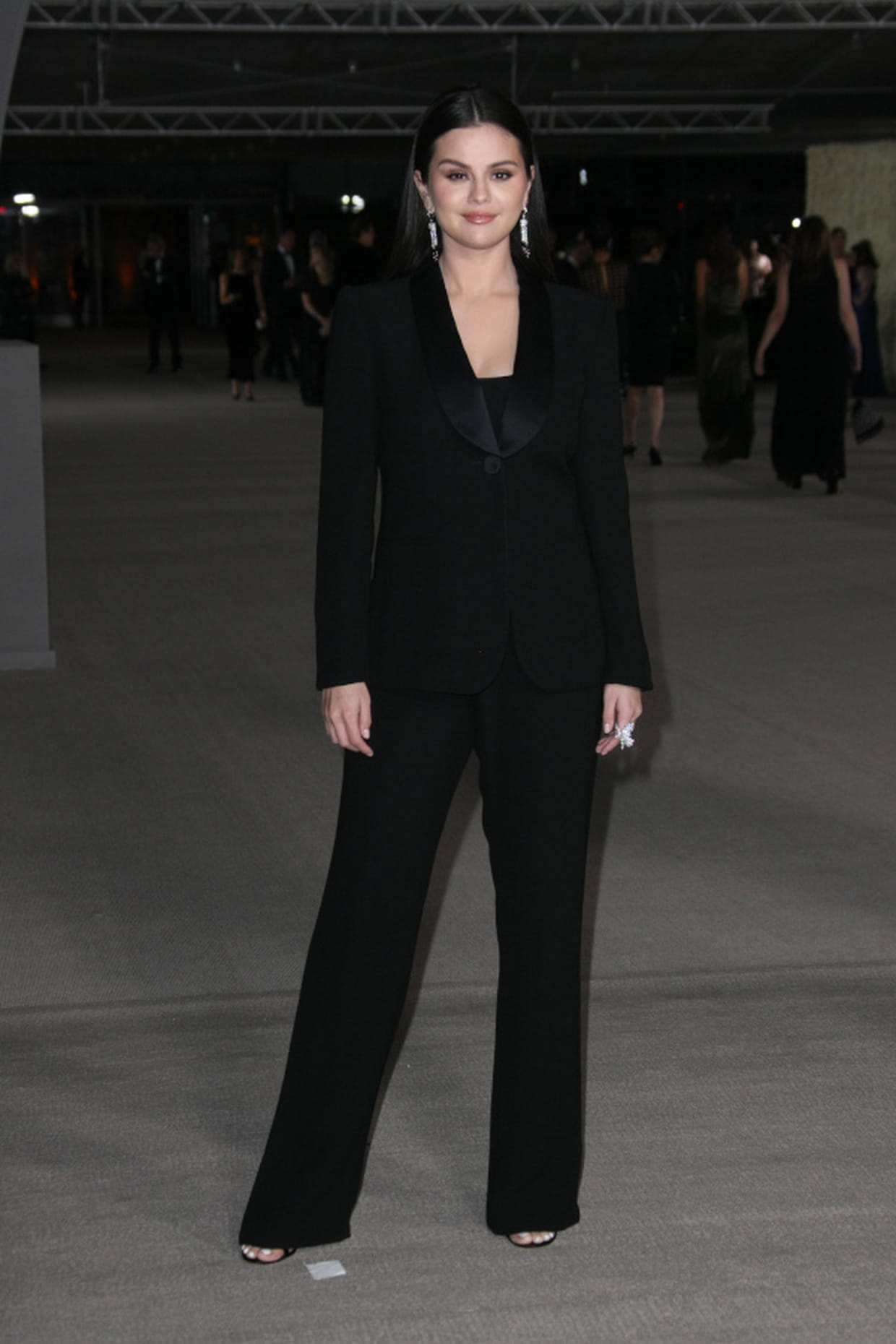 Selena Gomez en tailleur pantalon noir au gala de l'Academy Museum of Motion Pictures à Los Angeles le 15 octobre 2022.