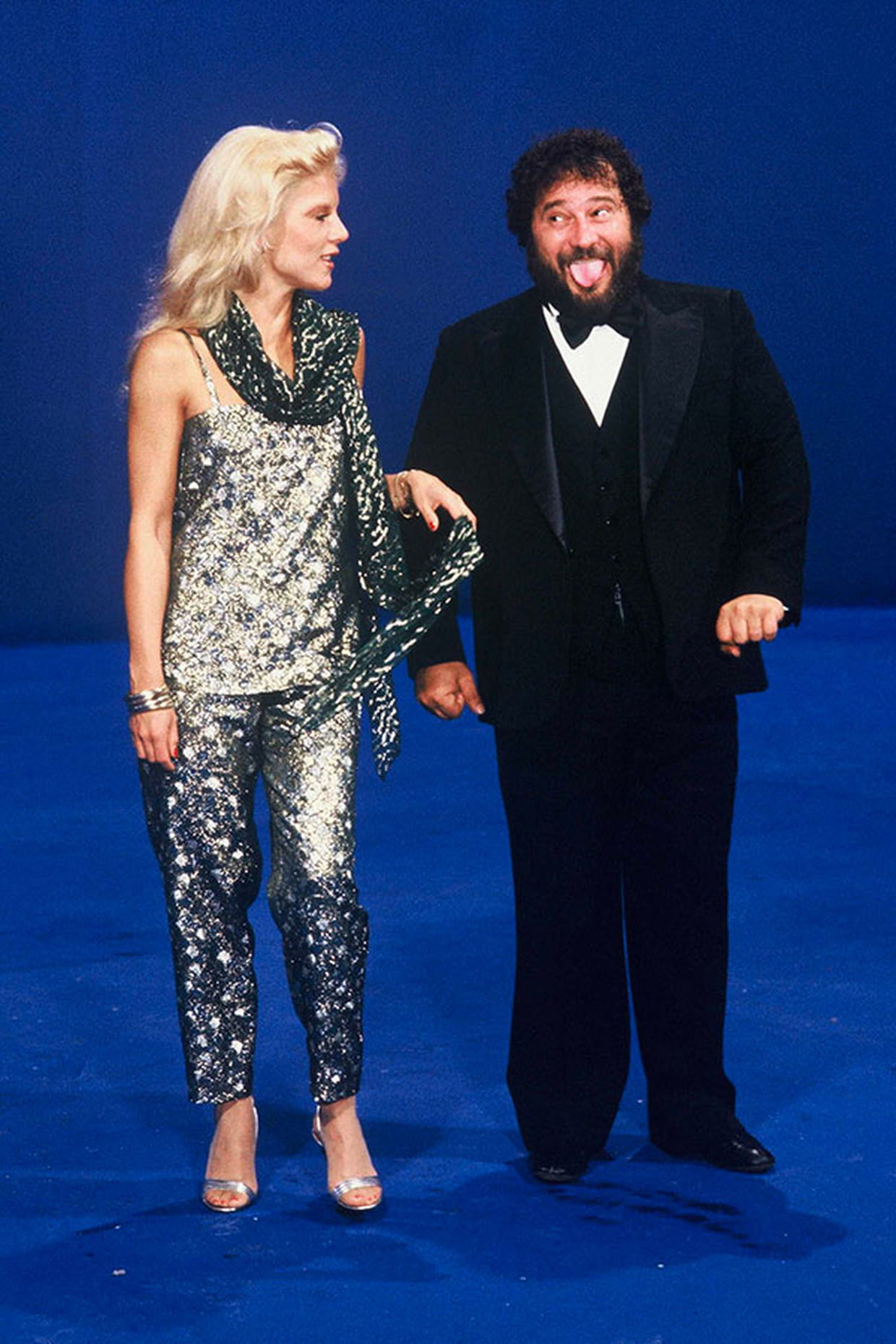 Sylvie Vartan en ensemble à sequins avec Carlos lors de l'émission Numéro Un Sylvie Vartan à Paris le 20 juin 1979.