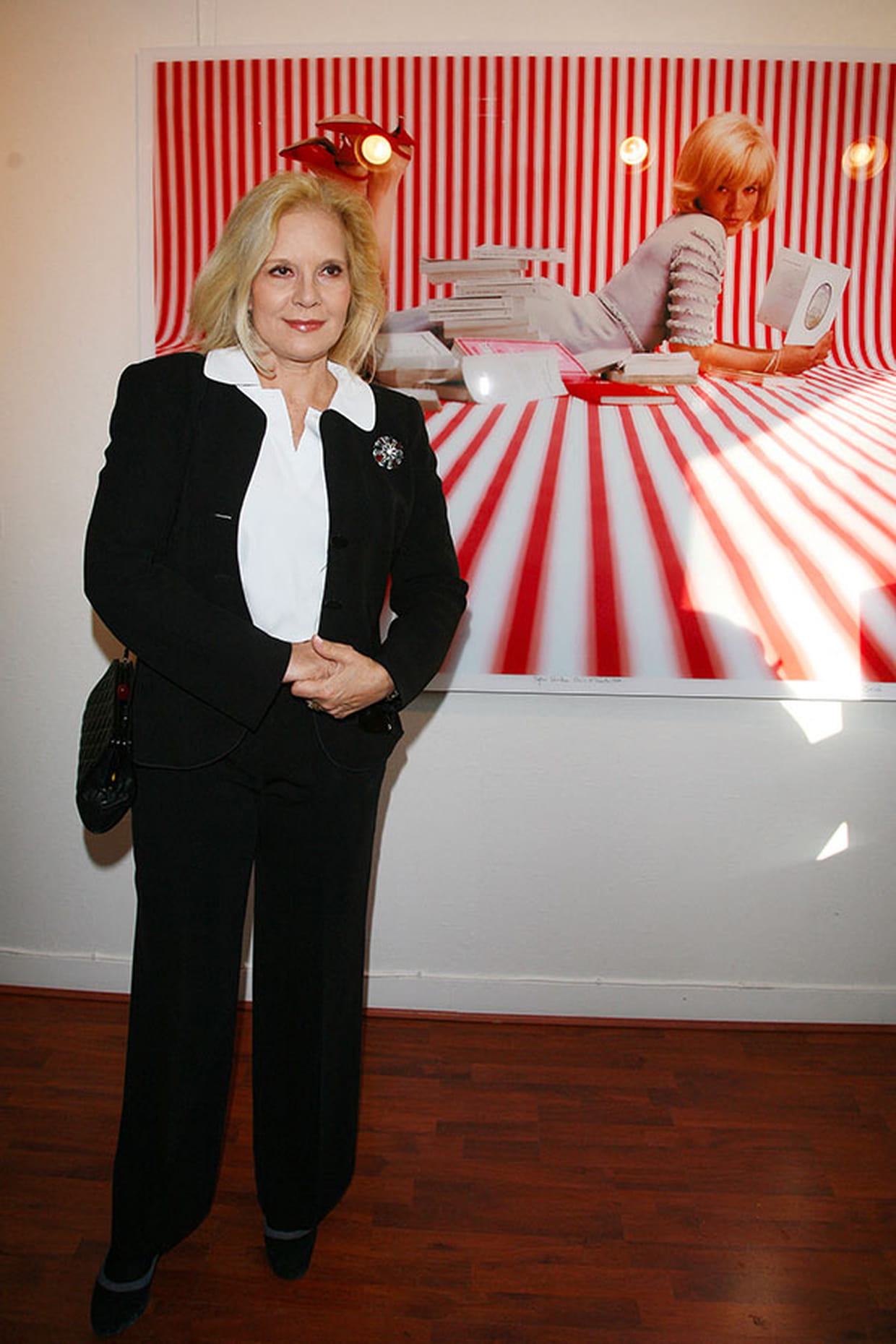 Sylvie Vartan en costume noir et chemise blanche à l'inauguration de l'exposition Jean-Marie Périer à Paris le 4 juin 2009.