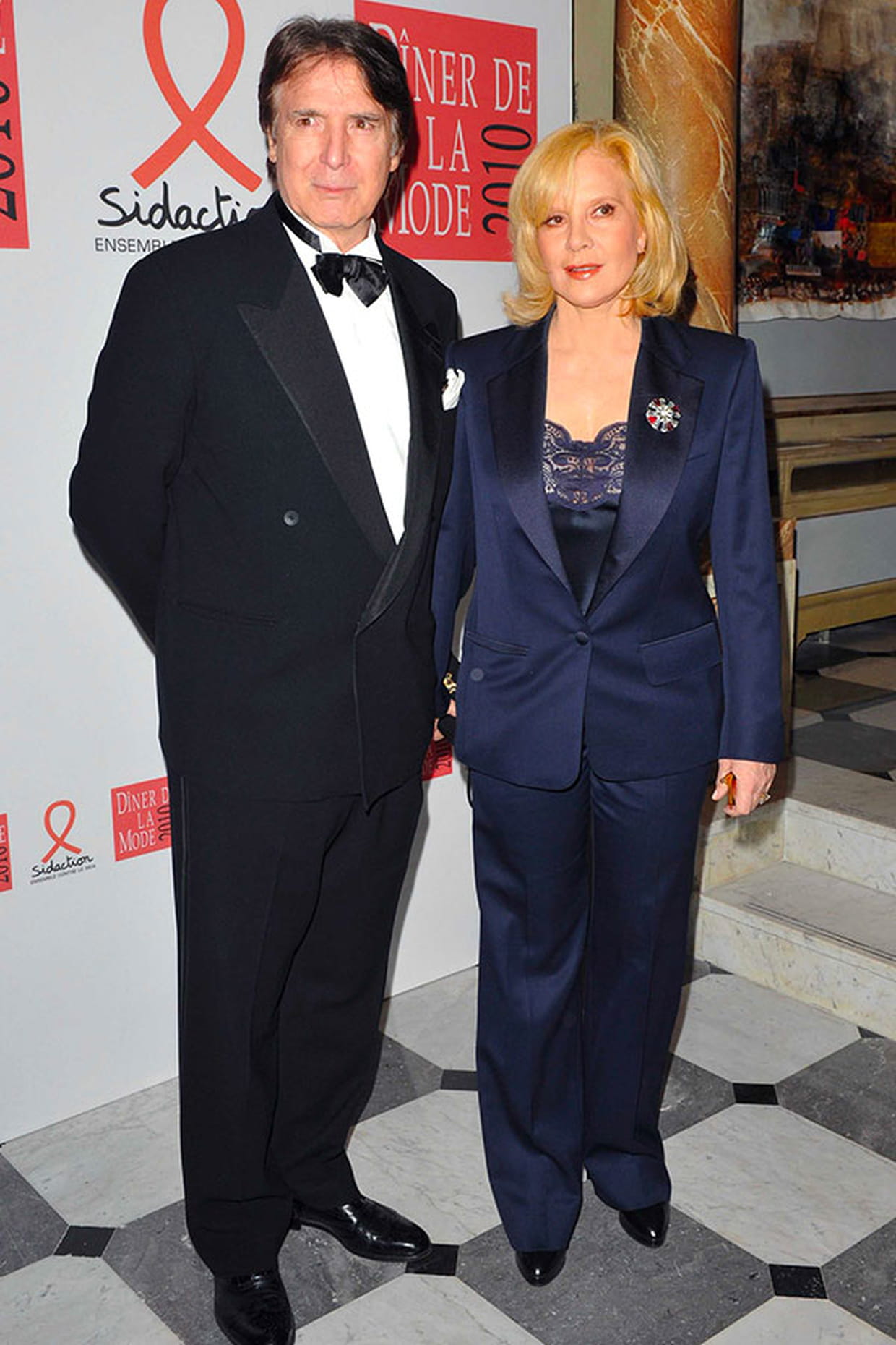 Sylvie Vartan en costume marine satiné avec Tony Scotti à un gala Sidaction à Paris le 28 janvier 2010.