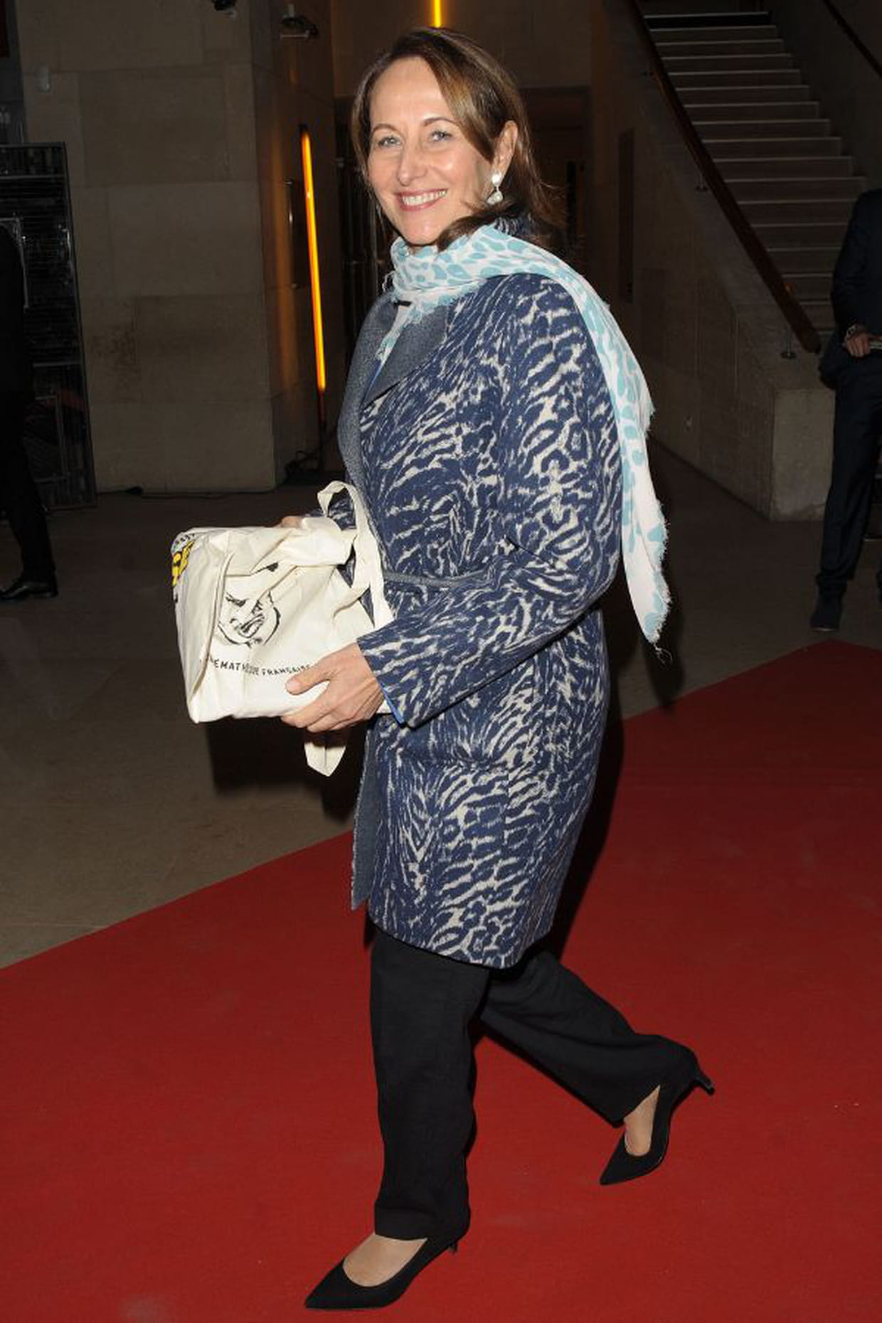 Ségolène Royal en manteau imprimé et pantalon noir