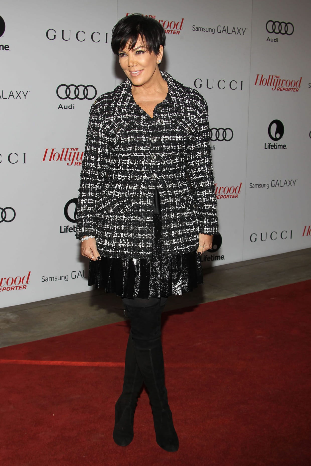 Kris Jenner en manteau en tweed lors d'un événement organisé par The Hollywood Reporter à Los Angeles le 11 décembre 2013.