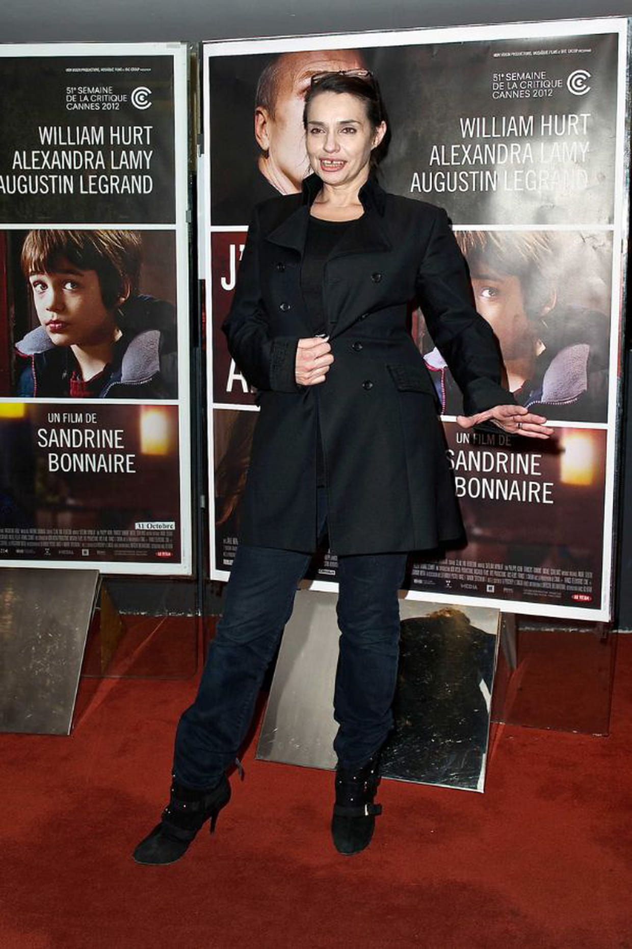 Béatrice Dalle en jean et manteau mi-long noir à l'avant-première du film J'enrage de mon absence à Paris le 26 octobre 2012.