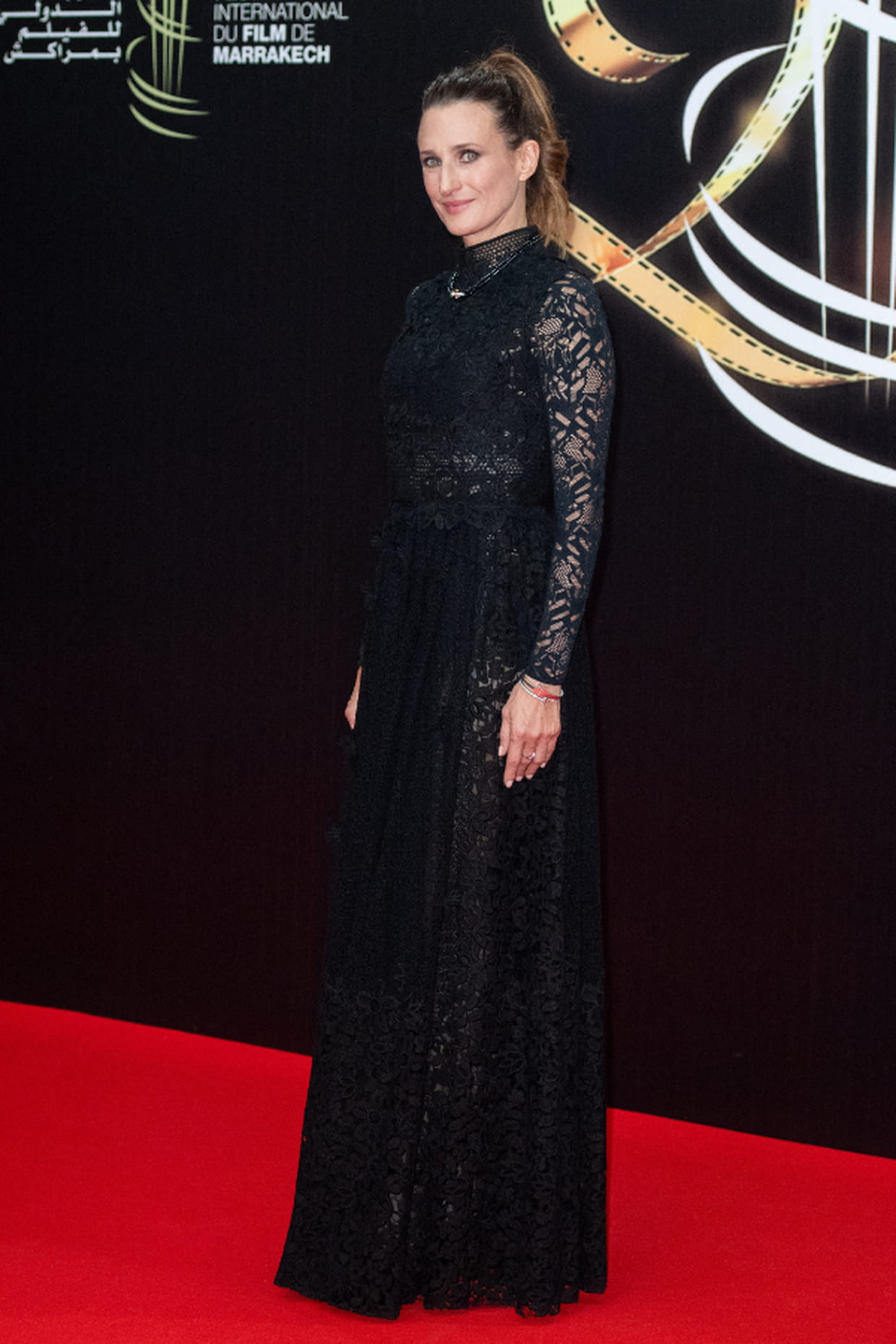 Camille Cottin en robe longue noire en dentelle lors de la 20ème cérémonie du Festival du film de Marrakech le 25 novembre 2023.
