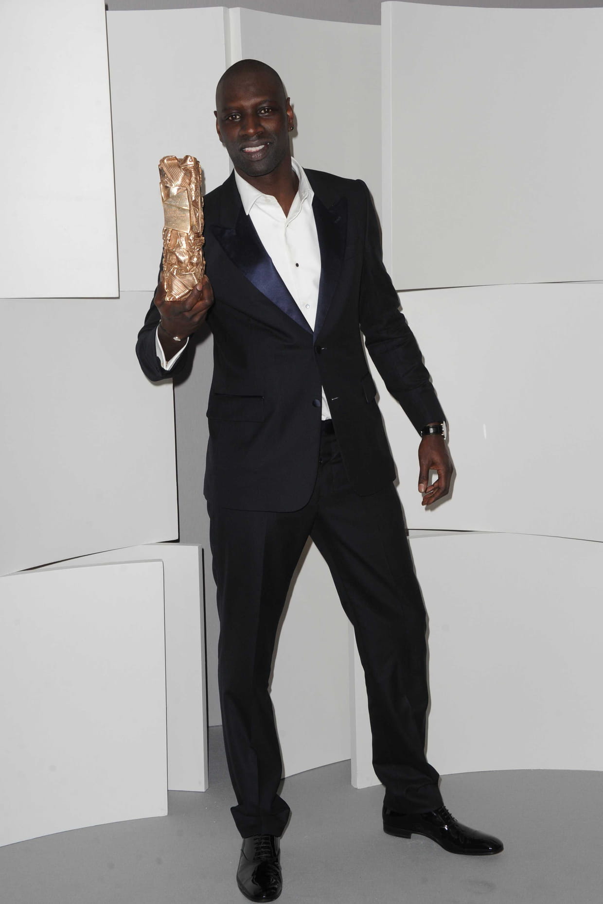 Omar Sy en smoking noir et chemise blanche lors de la 37ème cérémonie des César à Paris le 24 février 2012.