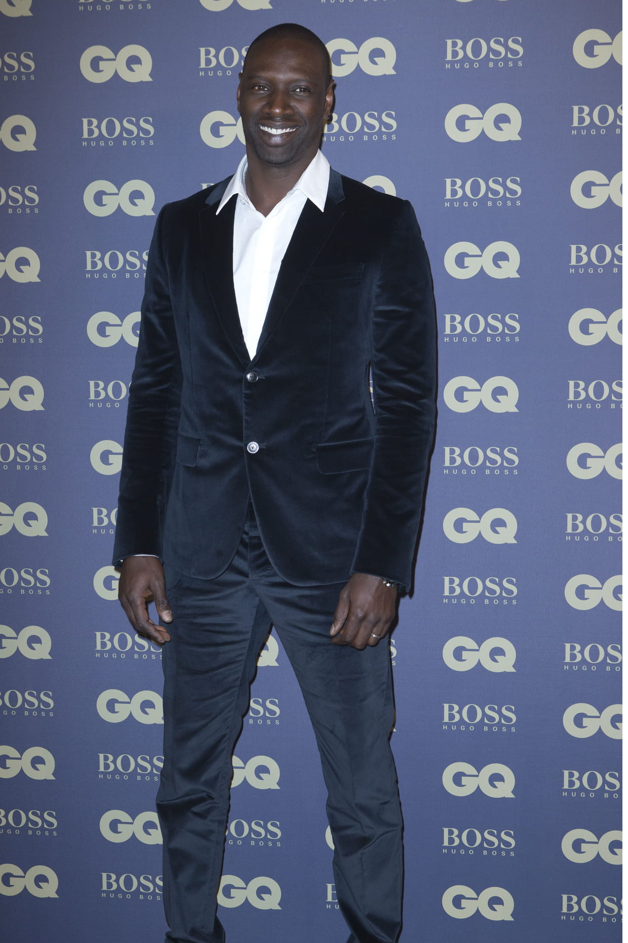 Omar Sy en costume en velours bleu marine lors d'une soirée GQ à Paris le 19 novembre 2014.
