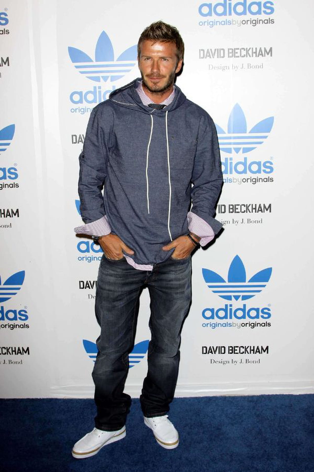 David Beckham en sweat à capuche et baskets blanches à un événement Adidas à Los Angeles le 30 septembre 2009.