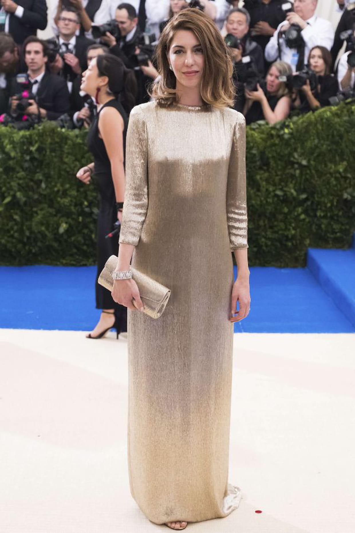 Sofia Coppola en robe longue dorée au Met Gala à New York le 2 mai 2017.