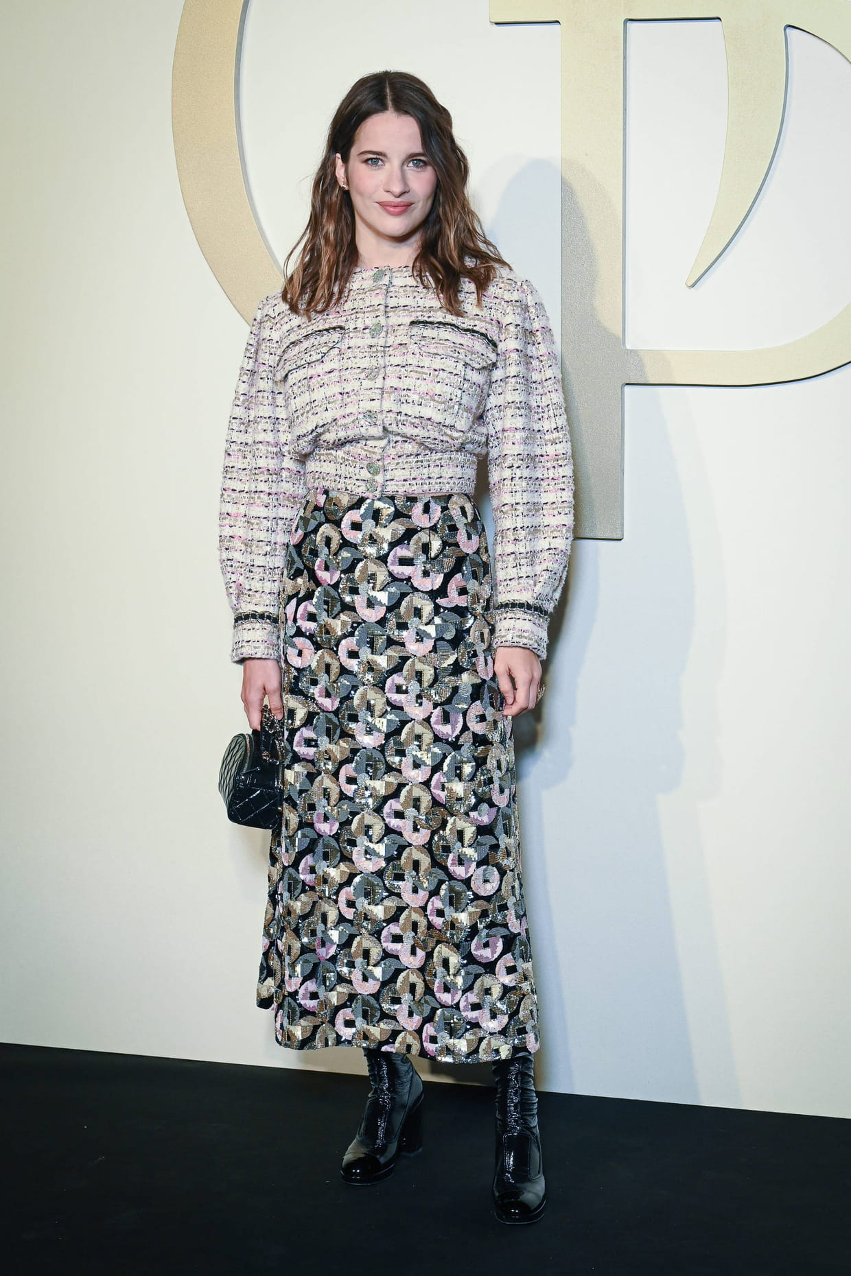 Rebecca Marder en jupe fleurie et bomber en tweed