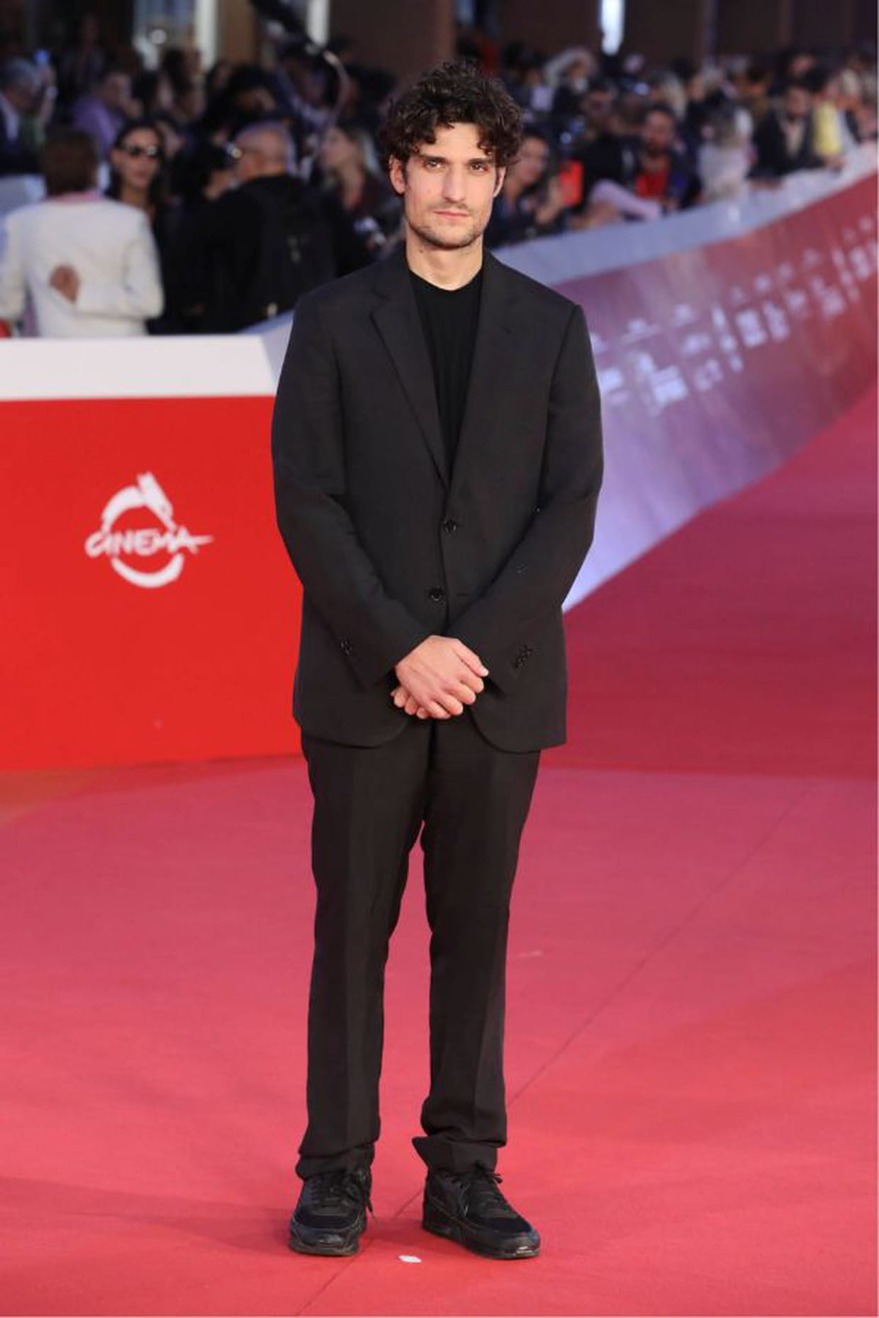 Louis Garrel en costume noir et pull fin à l'avant-première du film Souvenirs d'Italie lors du Festival du film de Rome le 20 octobre 2022.