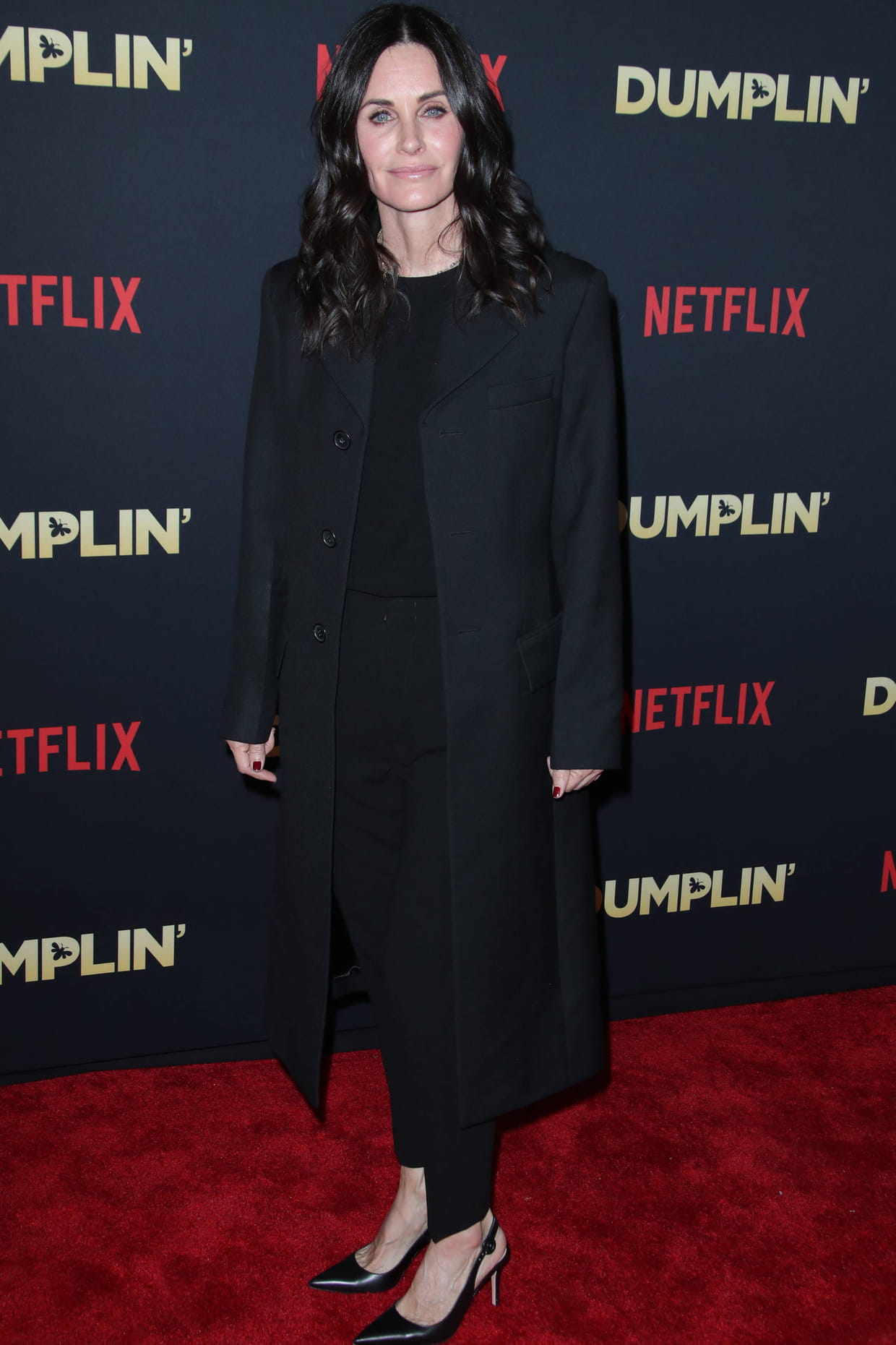 Courteney Cox en total look noir et slingbacks pointues lors de l'avant-première du film Dumplin à Los Angeles le 6 décembre 2018.
