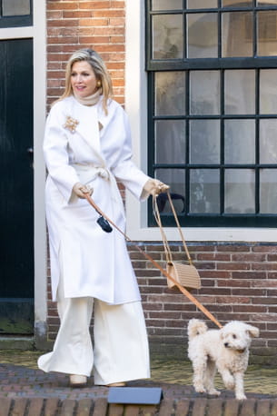 Maxima des Pays-Bas en manteau et pantalon blancs
