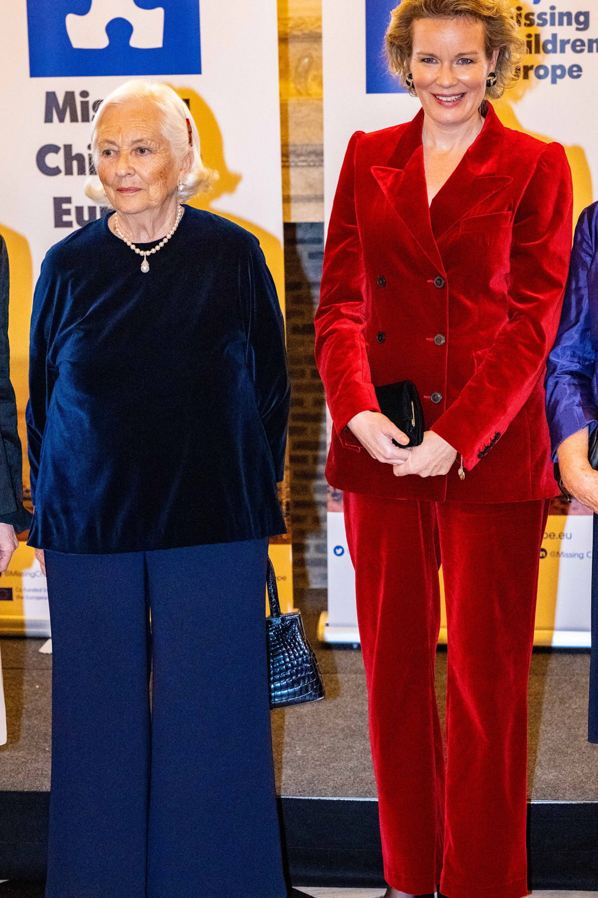 Mathilde de Belgique en tailleur rouge en velours