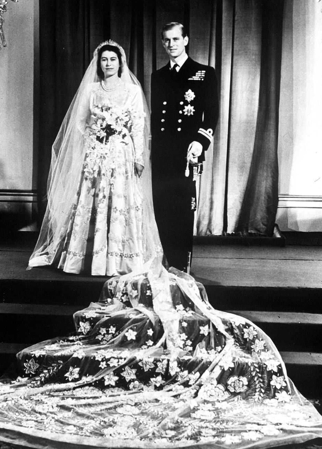 La reine Elizabeth II (21 ans) et le Duc d’Édimbourg (26 ans) en novembre 1947, le jour de leur mariage.