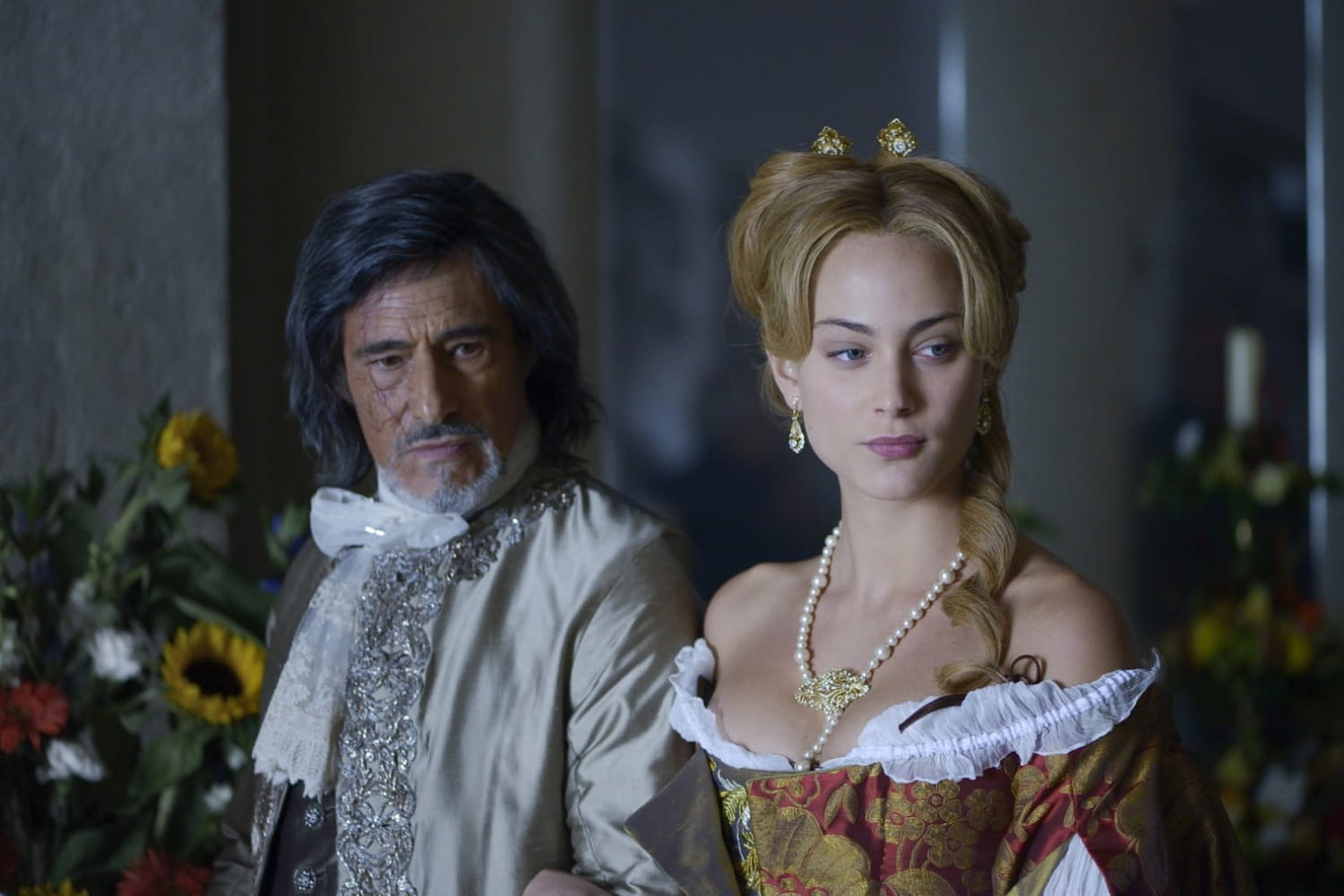 Synopsis : En France, à la fin du XVIIe siècle, Angélique Sancé de Monteloup est promise au comte Joffrey de Peyrac. La jeune femme refuse tout d'abord cette union imposée avec un homme qu'elle ne connaît pas. Pourtant, après avoir rencontré Joffrey, elle accepte d'épouser ce libre penseur au visage balafré et à l'esprit cinglant. Peu de temps après, elle s'apprête à quitter son époux, avec son accord, pour se lancer à la recherche de son frère, disparu depuis des années. Mais elle décide finalement de rester auprès de Peyrac, souffrant après avoir été blessé par une explosion dans son laboratoire.