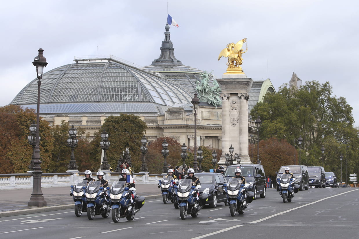 Le cortège funéraire, en route pour l'église Saint-Sulpice, ce lundi matin.