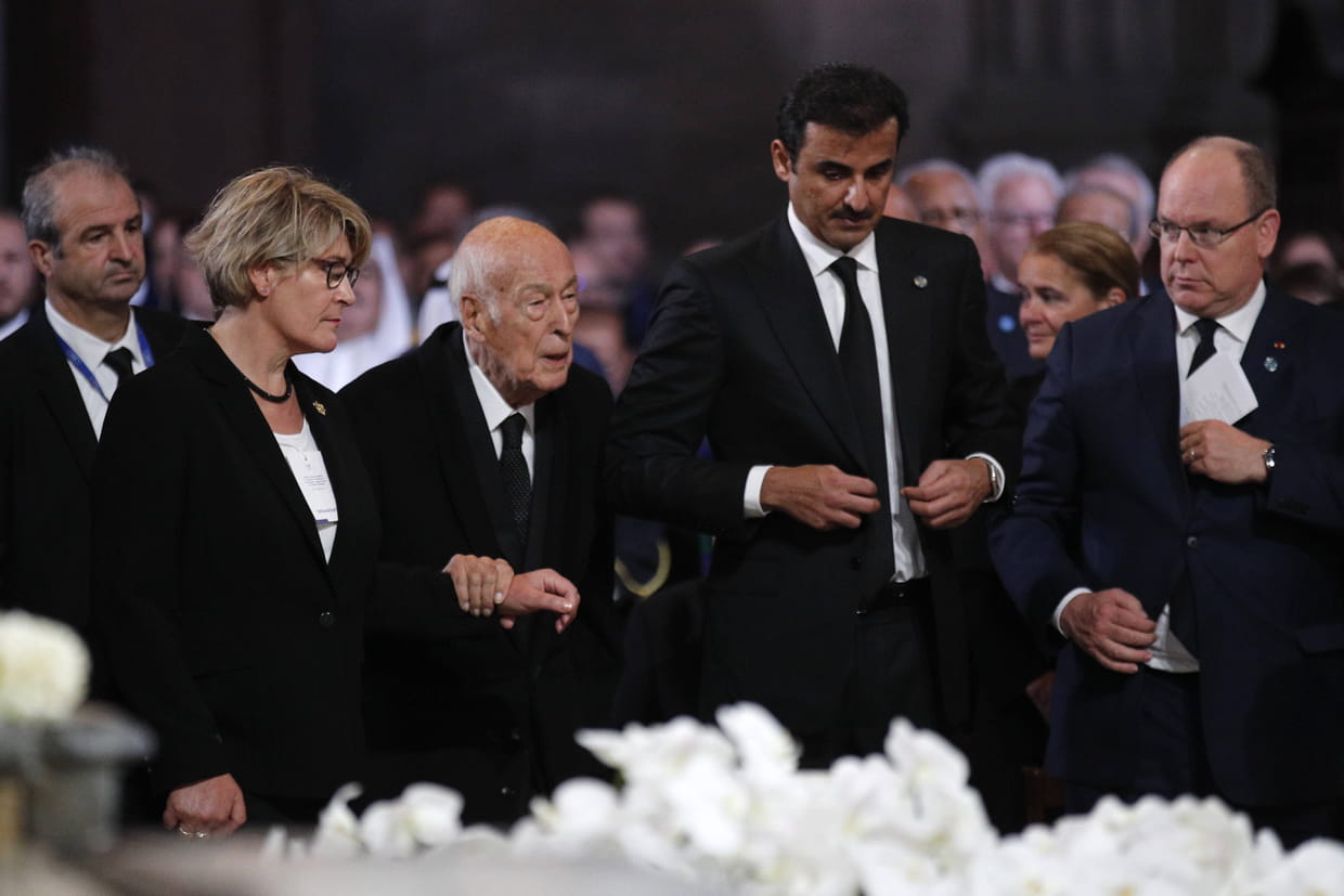 Valérie Giscard d'Estaing, l'émir du Qatar Thamim al Thani et le prince Albert de Monaco