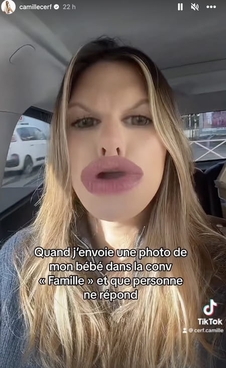 Miss France 2015 a donc fait une vidéo sur TikTok où elle est grimée avec un filtre "bouche de canard". "Oublie mon numéro de téléphone. Pour moi, désormais, tu es morte", dit-elle en blaguant. Et voilà pourquoi elle a eu cette réaction : "Quand j'envoie une photo de mon bébé dans la conv 'Famille' et que personne ne répond".