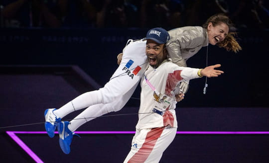 Manon Apithy se souviendra à jamais des JO de Paris. Elle a décroché la médaille d'or de sabre et a célébré sa victoire avec Boladé Apithy, son époux, lui aussi sportif. Mais à l'époque, celui-ci avait fait polémique, accusé de lui avoir "volé son moment"...
