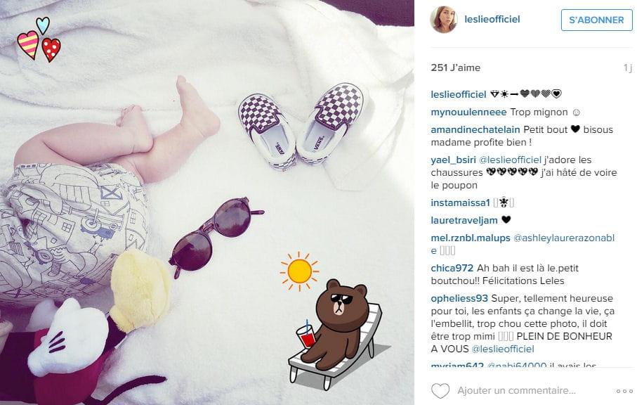 Carnet bleu pour Leslie. La chanteuse est devenue maman et a annoncé elle-même la bonne nouvelle sur son compte Instagram. Pas directement, mais en publiant un cliché sur lequel on peut voir les petits petons d’un nourrisson. Les autres photos postées par l’interprète de Sobri tout au long de l’été ne laissent guère de place au doute quant au sexe de son bébé : c’est un petit garçon ! Si l'artiste, révélée par l'émision Graines de Star en 2001, n'a dévoilé ni son prénom, ni sa date de naissance, elle a partagé son kit de naissance avec ses fans. Leslie a en effet tout préparé pour l’arrivée de son baby boy en ne laissant rien au hasard. Avec une mini paire de chaussons Van’s trop mignons et les immanquables Stan Smith d’Adidas, le bout de chou est tendance pour l'été. Une future fashion victime ?