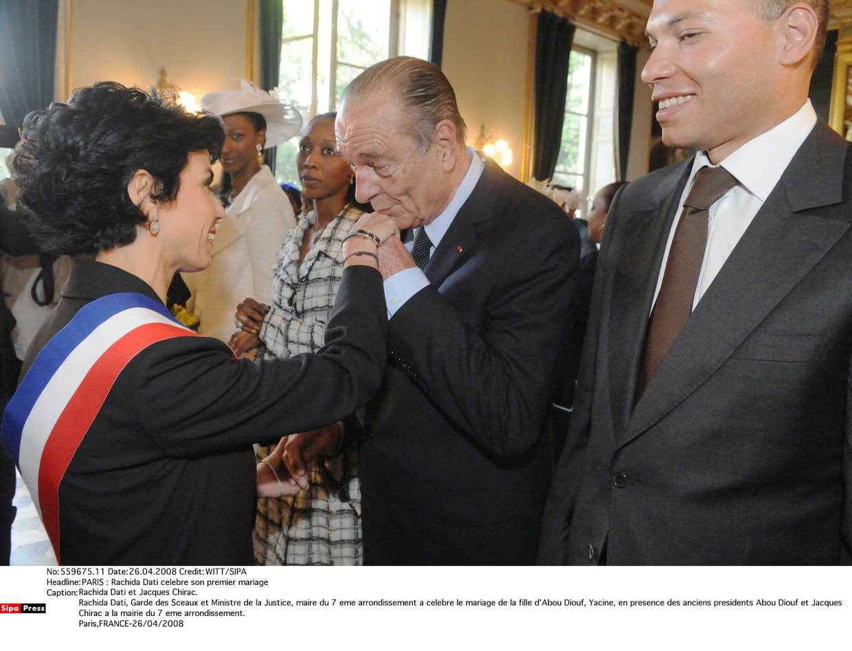 Rachida Dati, alors maire du 7e arrondissement de Paris, célèbre son premier mariage. "Vous pouvez embrasser la mariée !" Jacques Chirac, lui, préfère rendre hommage au maire...