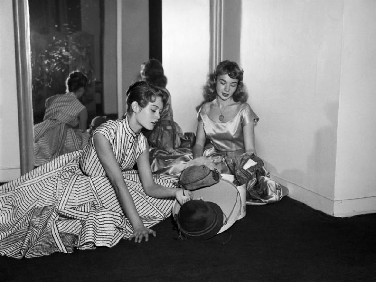 BB, à l'aise comme un poisson dans l'eau dans le milieu de la mode, ici au milieu des chapeaux d'Emma Pierron.