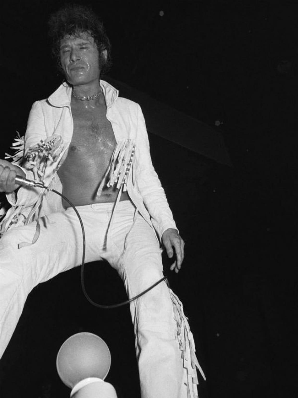 30 octobre 1972 : Johnny Hallyday sur la scène du palais des Sports à Paris.